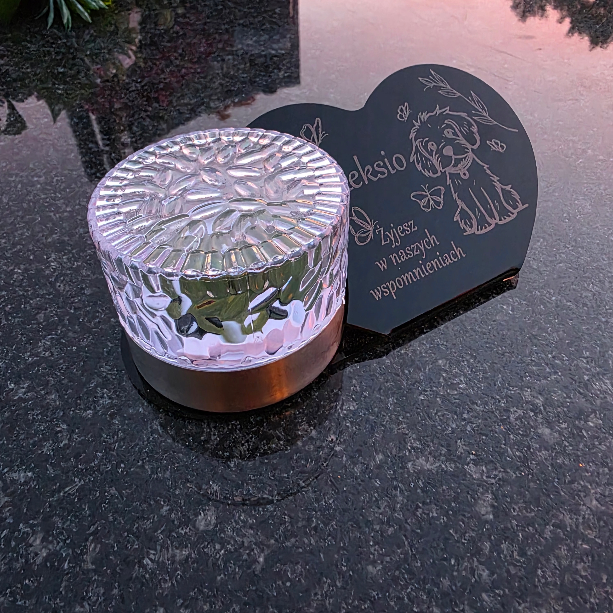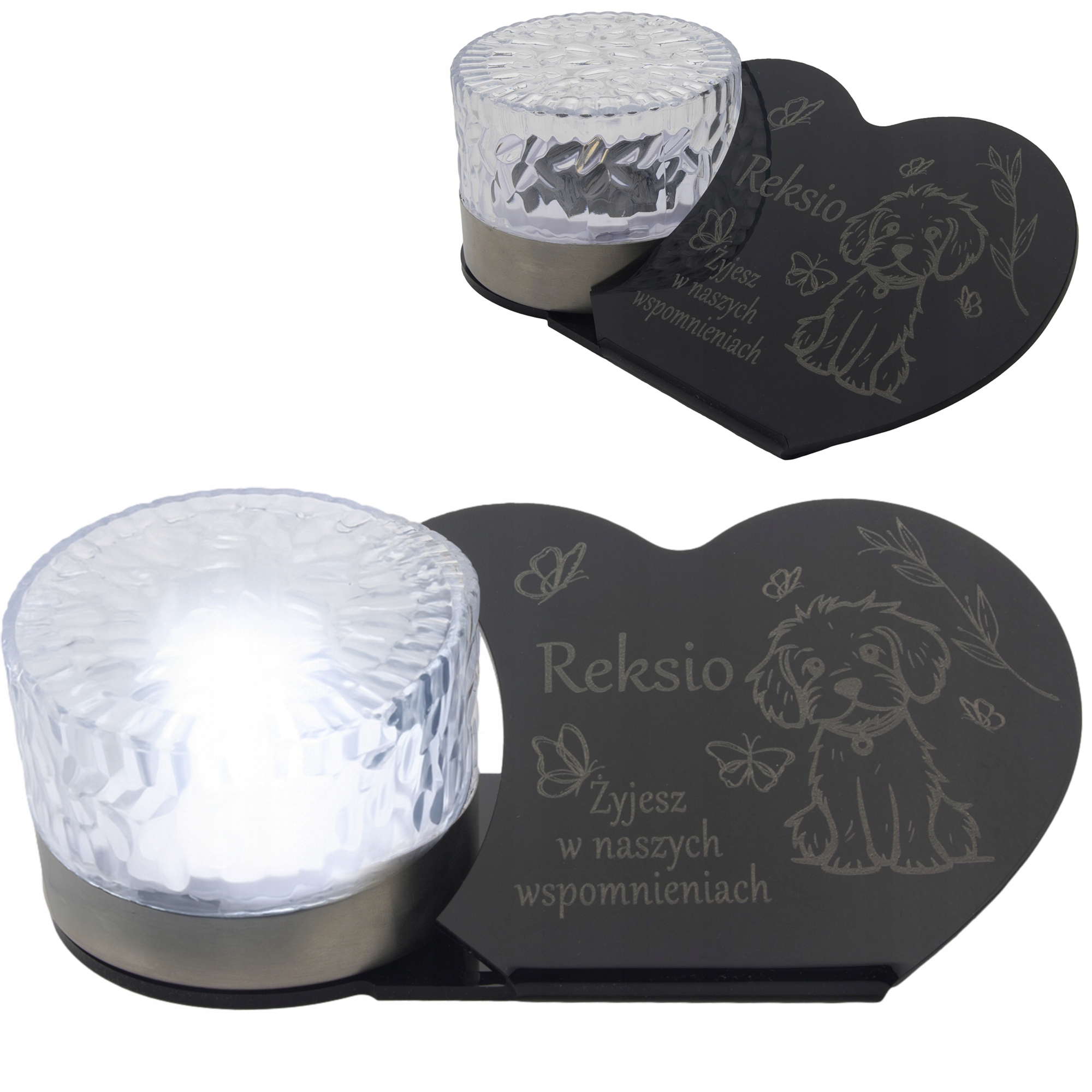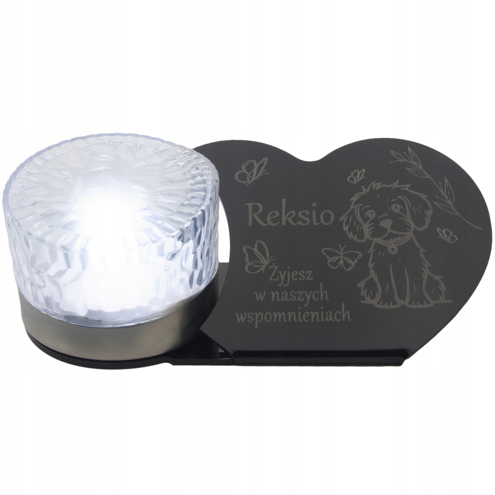 LED СОНЯЧНА СВІЧКА для Собаки, статуетка сердечко, гравіювання ІМ'Я, 3D лампа