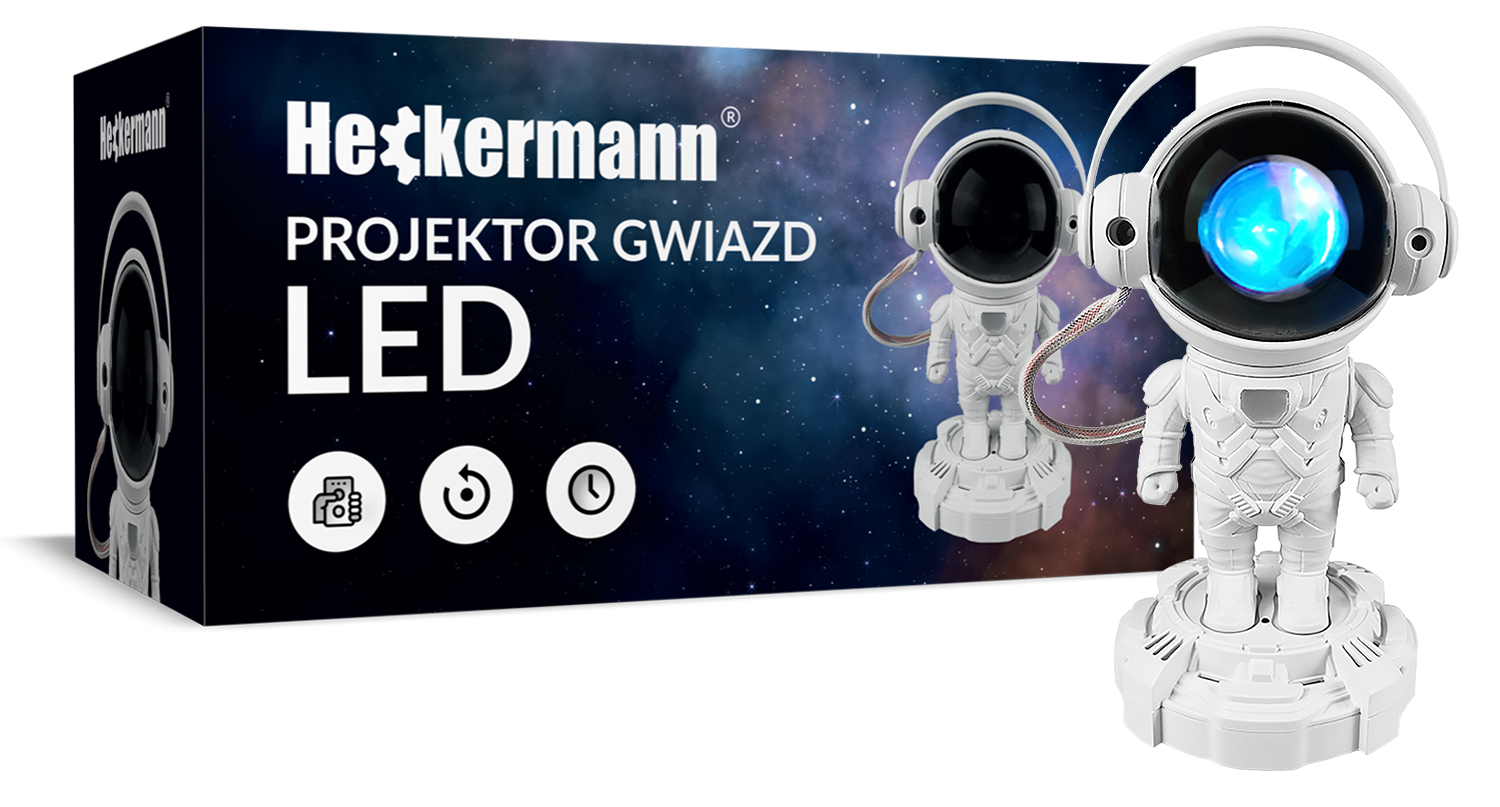 ⭐ Зоряний проектор астронавта – це пристрій, який випромінює світло, що імітує зірки, космічний туман і місяць.