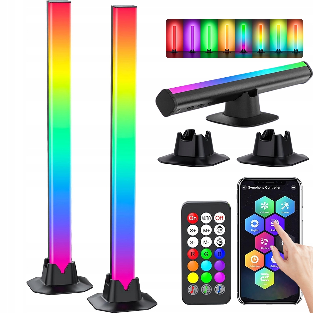 ⭐2 шт. СВІТЛОДІОДНА ПАНЕЛЬ RGB З ПУЛЬТОМ ТА ДОДАТКОМ 🎵 СИНХРОНІЗАЦІЯ МУЗИКИ 🎨 8 РЕЖИМІВ СВІТЛЕННЯ ЖИВЛЕННЯ USB
