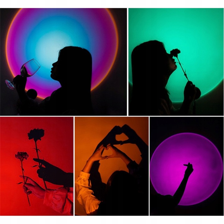Лампа, що імітує захід сонця з функцією зміни кольору RGB, дає ще більше можливостей для налаштування освітлення під різні ситуації та стилі фотографії. Завдяки цьому ви можете отримати різноманітні відтінки теплих кольорів, від більш помаранчевих до більш рожевих чи фіолетових, що дає ще більше свободи та креативності під час створення фотографій. Крім того, лампа RGB може служити цікавим декоративним елементом. що створить приємний настрій і атмосферу в кімнаті.