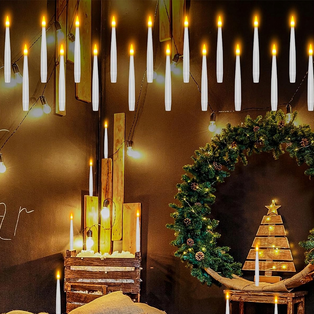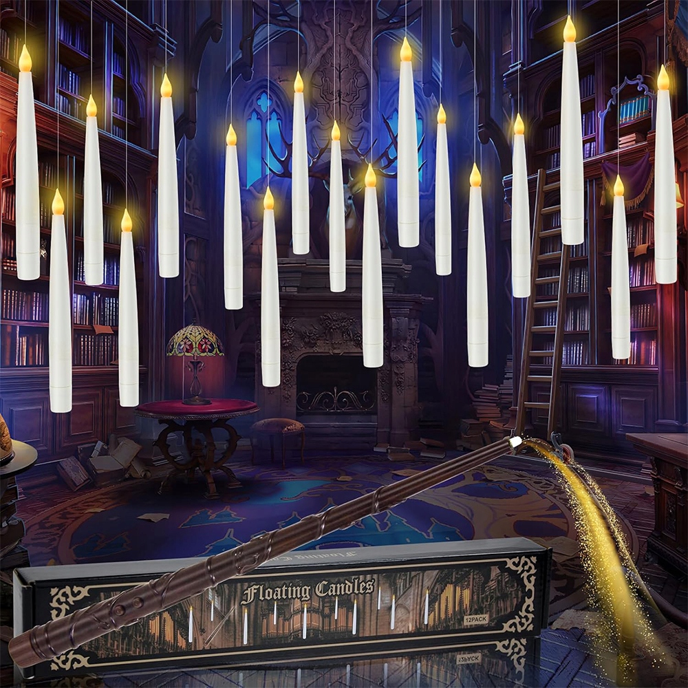 🪄Ці безполум’яні світлодіодні свічки мають 50-футову (майже невидиму) лінію. Створіть свій власний чарівний простір за вашим бажанням. Ви можете підвісити ці свічки до стелі або використовувати гачки, щоб повісити їх на вікно, стіну або ялинку. Вони ідеально підходять для прикраси Хеллоуїна, а також для прикраси каміна, обіднього столу, будинку та саду. Веселий пульт дистанційного керування у формі палички в поєднанні з плаваючими свічками створює чарівну атмосферу.