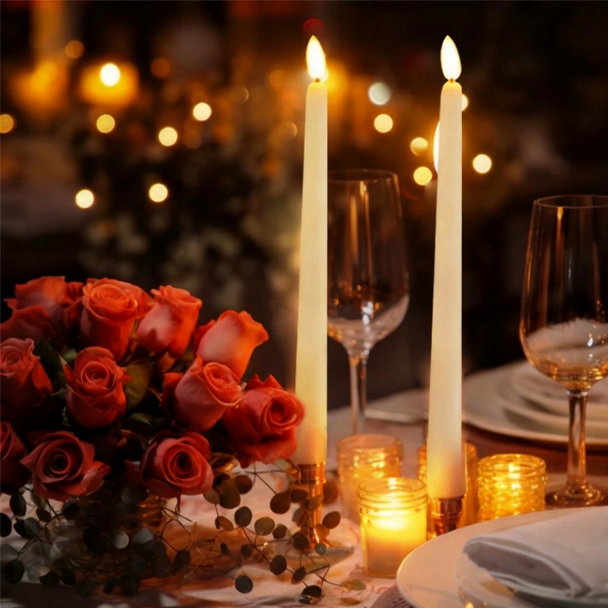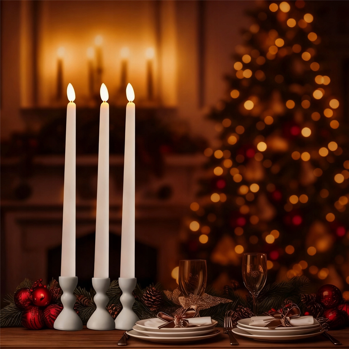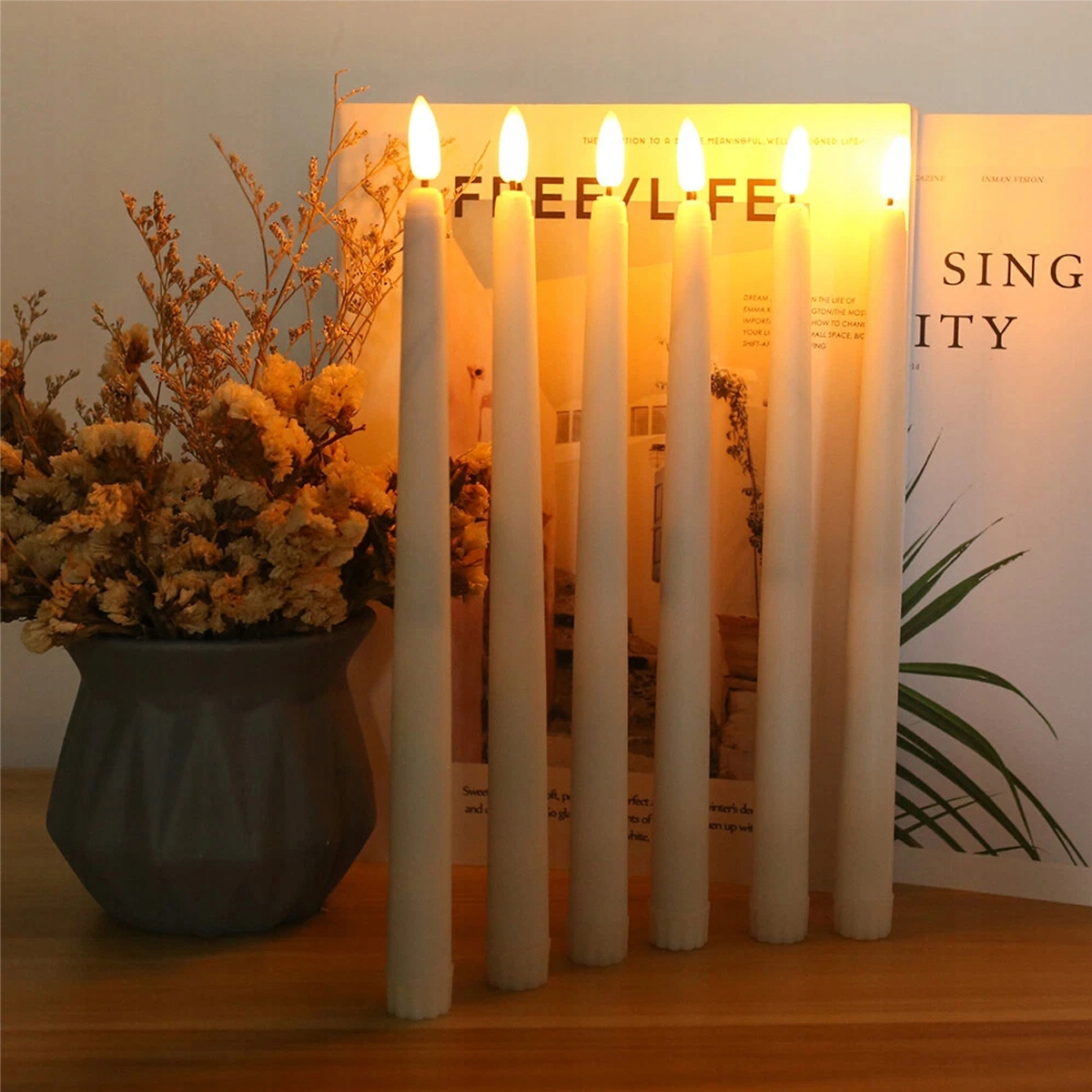 Імітований 3D-чорний гніт забезпечує реалістичний вигляд. Діаметр 20 мм x висота 285 мм, підходить для різних конічних підсвічників і люстр. Ідеальна заміна традиційних конічних свічок. Набір із 6 безполум’яних конічних свічок із високоякісного пластику кольору слонової кістки, які повільно мерехтять і виглядають красиво та реалістично.