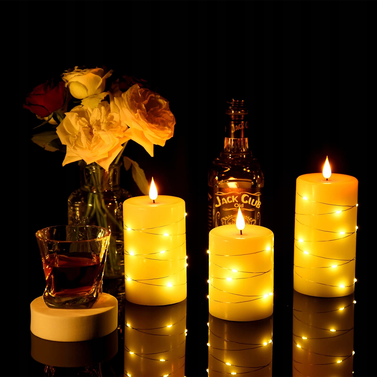 Світло на нитці, справжній віск, чорний гніт і 3D-лампа ідеально обрамляють наші найновіші безполум’яні свічки. Коли свічка на стовпі ввімкнеться, ці унікальні вогники мерехтять, як справжнє полум’я, створюючи красиву та романтичну атмосферу, а тепле світло свічок наповнить ваше життя