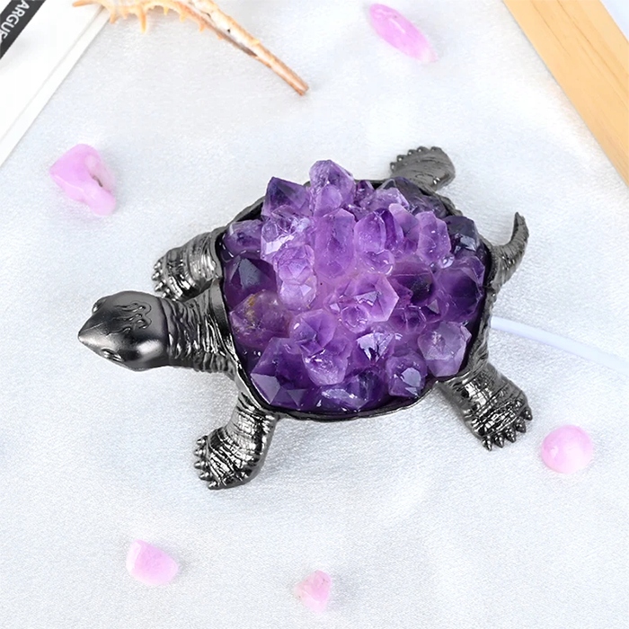 Декоративна лампа «черепаха» з кристалами аметисту створює приємну атмосферу.