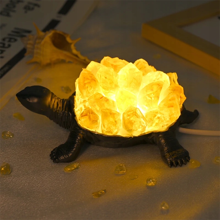 Декоративна лампа «черепаха» з кристалами цитрину, що створює приємну атмосферу.
