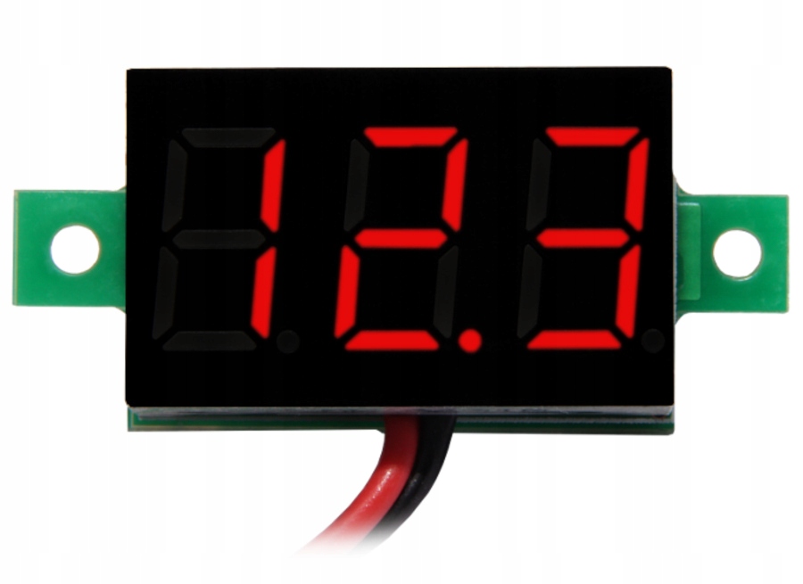 2-провідний вольтметр постійного струму 3–30 В – це пристрій, який використовується для вимірювання напруги постійного струму в діапазоні від 3 до 30 вольт. Це двопровідний вольтметр, тобто для вимірювання напруги потрібні лише два дроти. Даний вольтметр виконаний у вигляді невеликого електронного модуля зі світлодіодним дисплеєм, на якому відображається вимірювана напруга. Його напруга живлення становить 3-30 В постійного струму, що означає, що його можна живити від тієї ж лінії напруги, яку він вимірює.