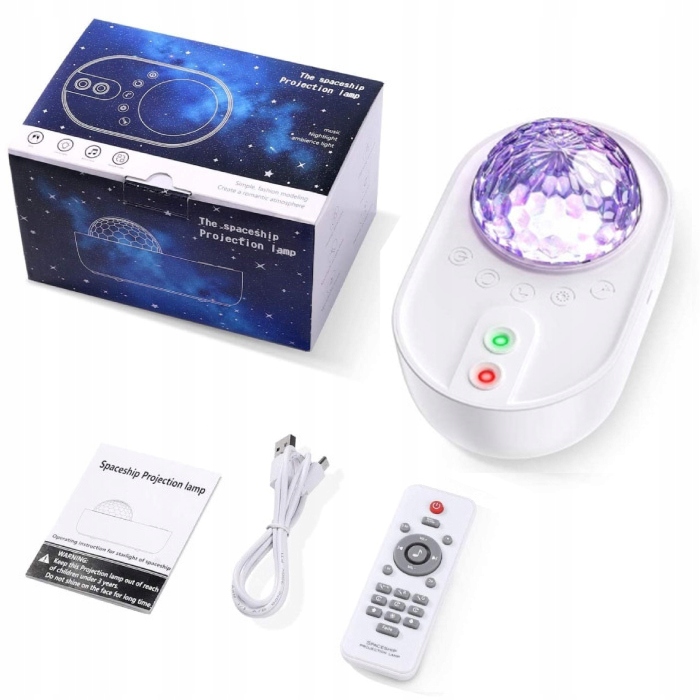 У набір входить пульт дистанційного керування, який працює на відстані до кількох метрів від пристрою. Ви можете використовувати його для зміни режимів, гучності відтворюваної музики та зміни пісень. Пристрій також має вбудований таймер, який можна встановити на 0,5/1/1,5/2 години роботи. Тож ви можете розслабитися та заснути, не турбуючись про вимикання проектора.