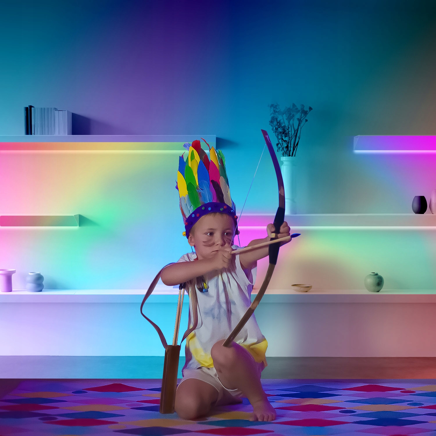 - БагатокольоровийRGBIC: кілька кольорів можуть відображатися на одній світлодіодній смузі одночасно