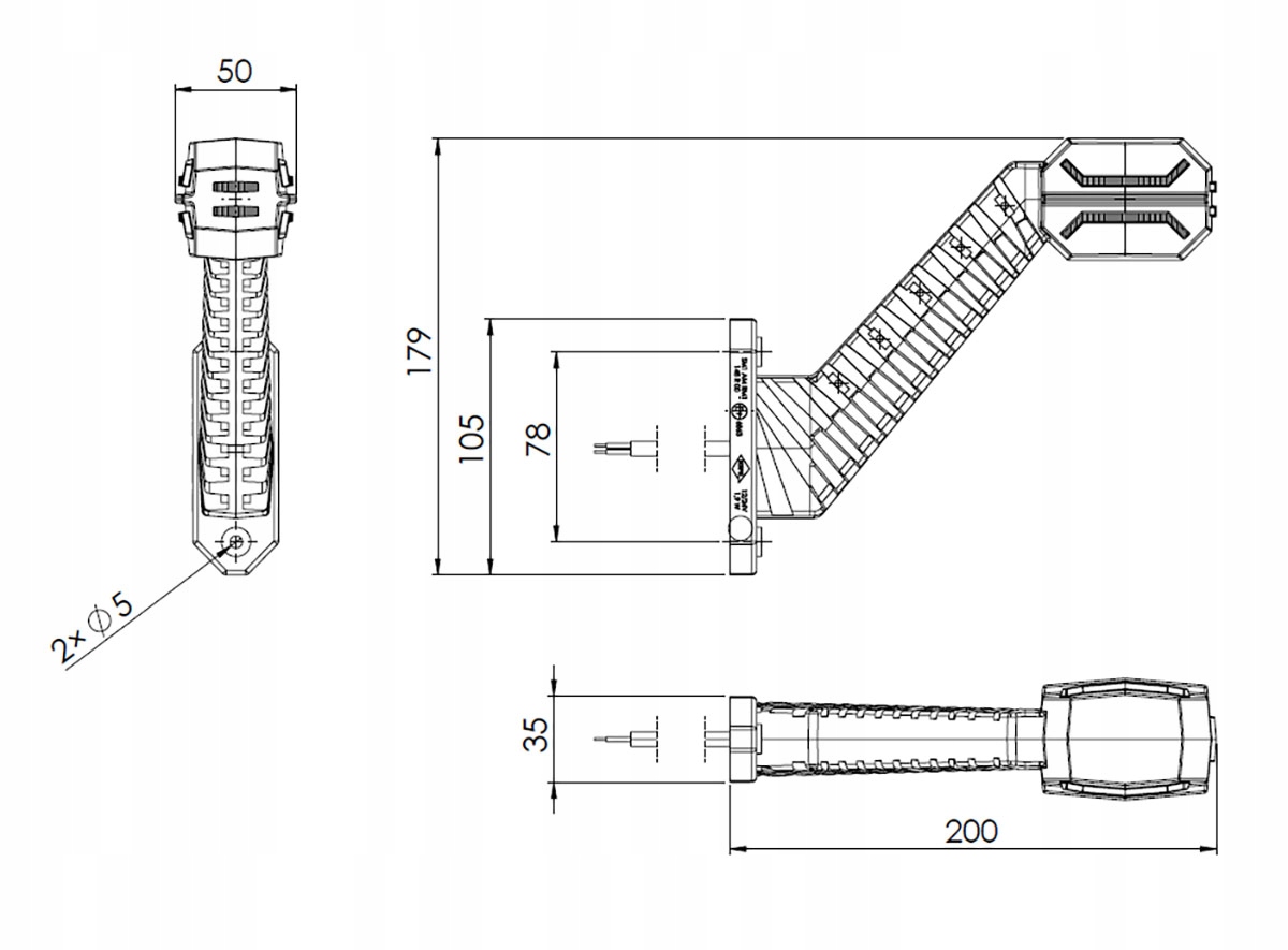 - довжина 200 мм 179 мм Відкритий кріплення 78 мм