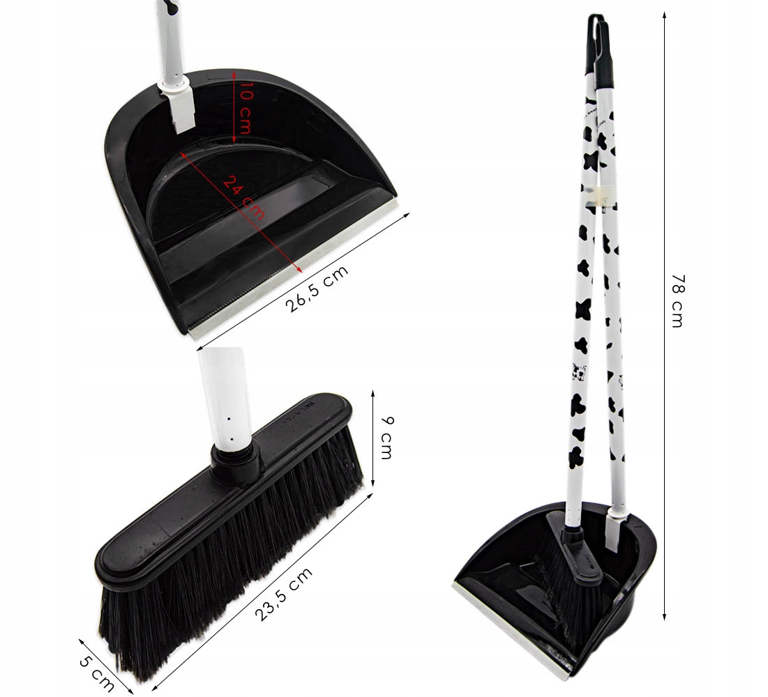 Набір ідеально підходить для щоденного прибирання. Легка та міцна конструкція забезпечує комфортне використання. Довга палиця з віником і совком не вимагає нахилу під час підмітання, розвантажує спину. Крім того, він оснащений ручкою, яка дозволяє повісити його в легкодоступному місці.