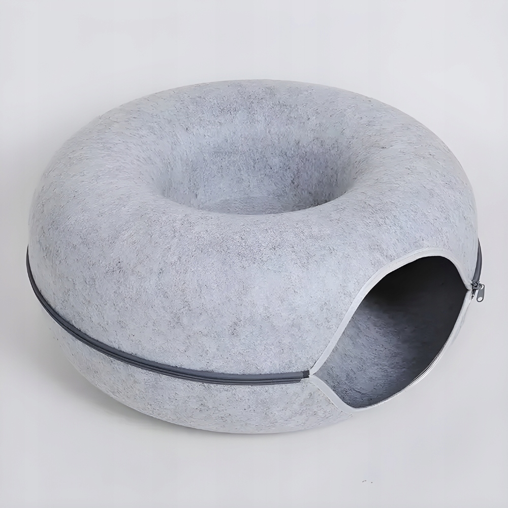 Матеріал з фетрового вовни забезпечує приємне місце для відпочинку, а форма американського пончика огортає кішку, забезпечуючи йому почуття безпеки .