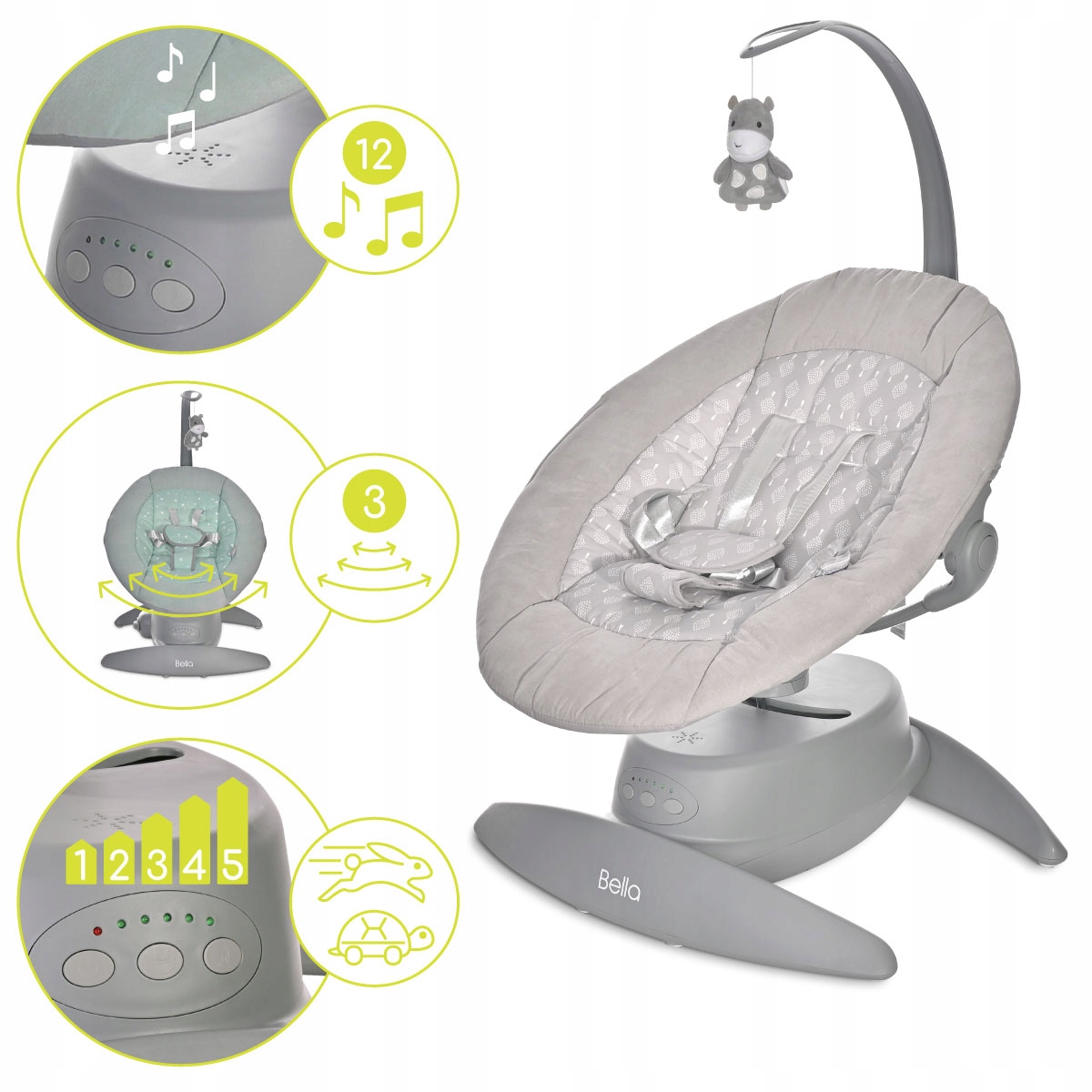 Зустріньте електронну колиску, Белла Рокер - справжній оазис миру для вашої дитини. Кожне гойдання - це як ніжне обійми , яке передає дитину у світ мрій і гармонії. Белла, зроблена з обережністю та любов'ю, поєднує новітню технологію з елегантним дизайном , пропонуючи не тільки функціональність , але й стиль. м'які та ніжні тканини оберніть дитину теплом і безпекою, при цьому даючи момент перепочинку.