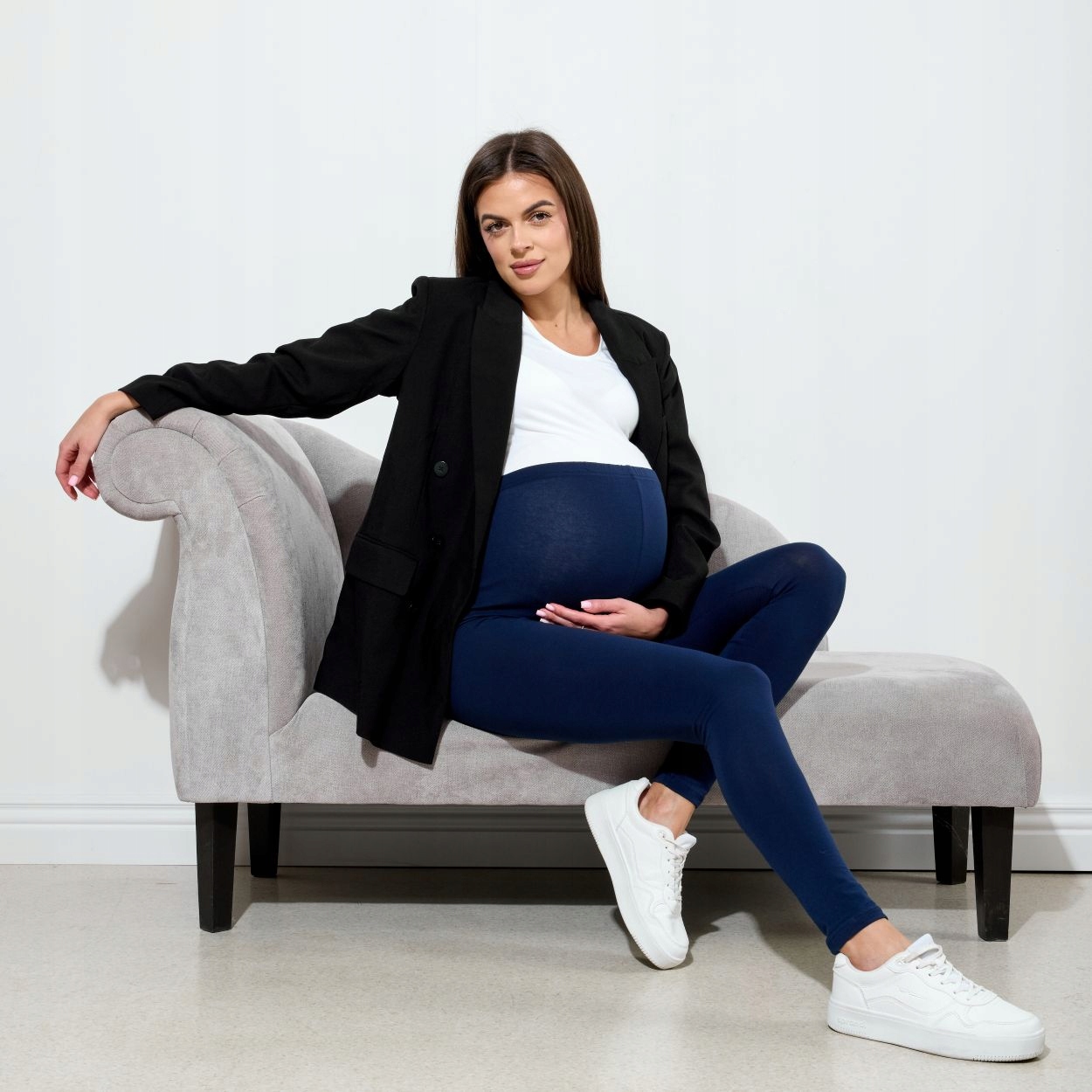 Довгі легінси для вагітних із високою талією створені, щоб забезпечити комфорт і функціональність майбутнім мамам. Передня частина легінсів пропонує достатньо місця для вашого зростаючого живота, що гарантує комфортне носіння протягом всієї вагітності.