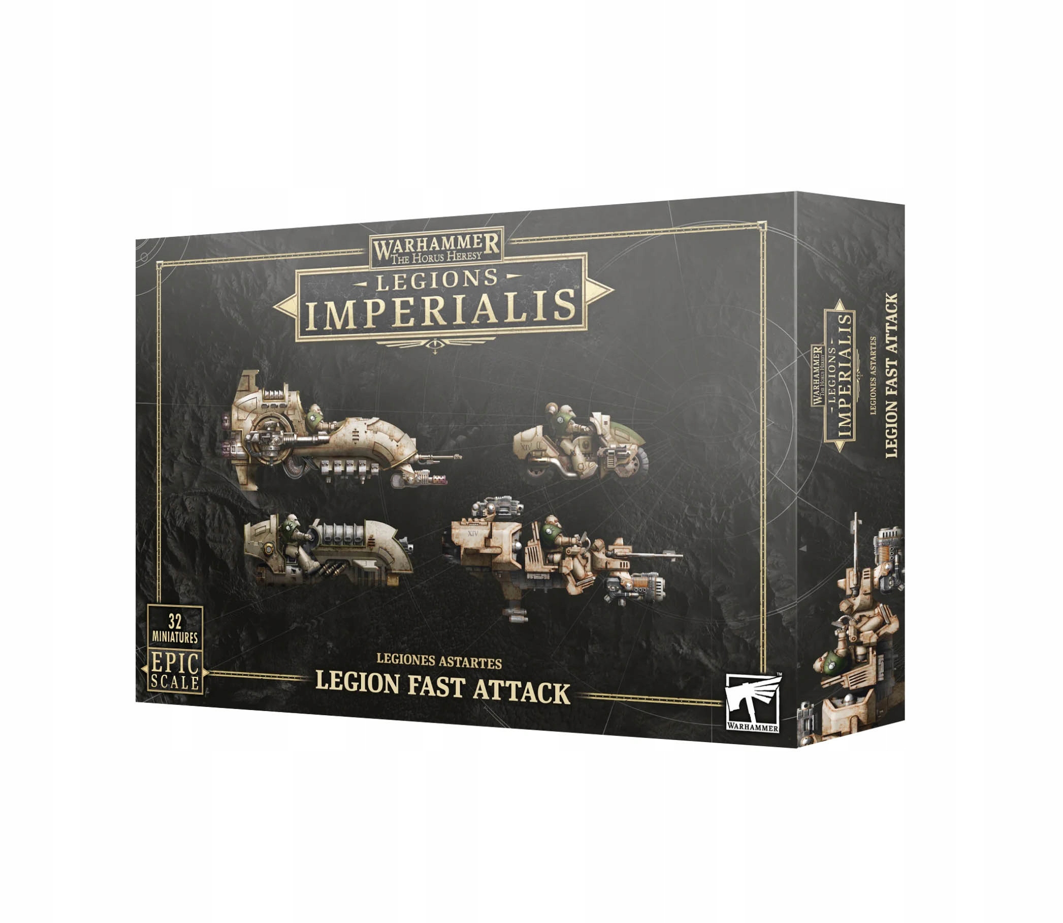 Цей багатокомпонентний пластиковий набір створює 32 легіони епічного масштабу. Мініатюри Astartes, розділені на 18 баз, для ваших ігор Legions Imperialis. Ви знайдете завислі Javelin і менші Land Speeder з різноманітною зброєю, а також мотоцикли Outrider і реактивні мотоцикли Scimitar. Використовуйте ці швидкі засоби атаки, щоб обійти супротивника з флангів і застосувати ефективну вогневу міць туди, де її найменше очікують.