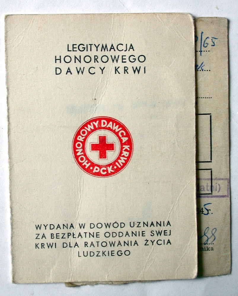 Legitymacja Honorowego Dawcy Krwi + wkładka grupy krwi Nowa Huta PCK RB