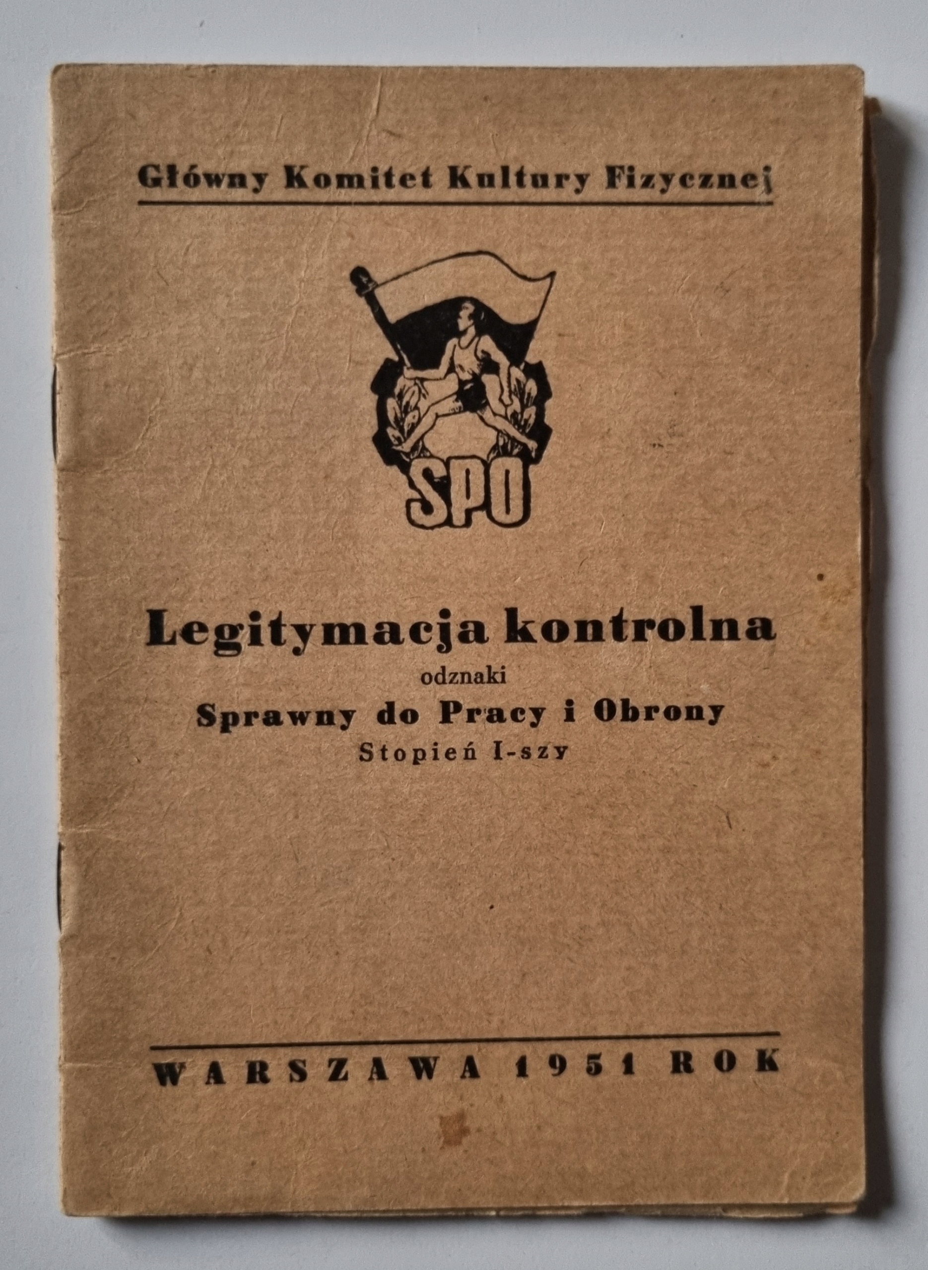 LEGITYMACJA KONTROLNA DO ODZNAKI SPO I STOPIEŃ 1951