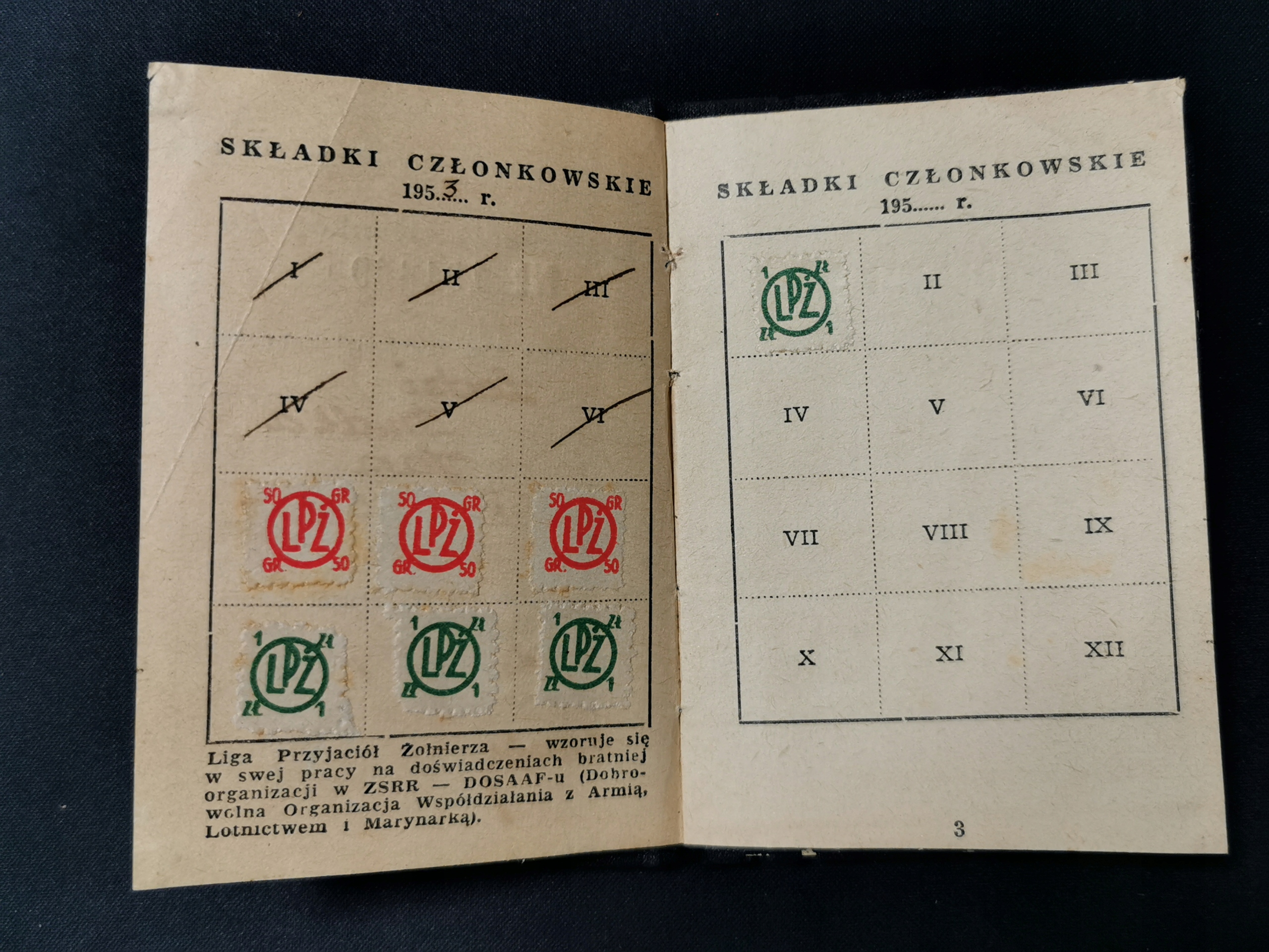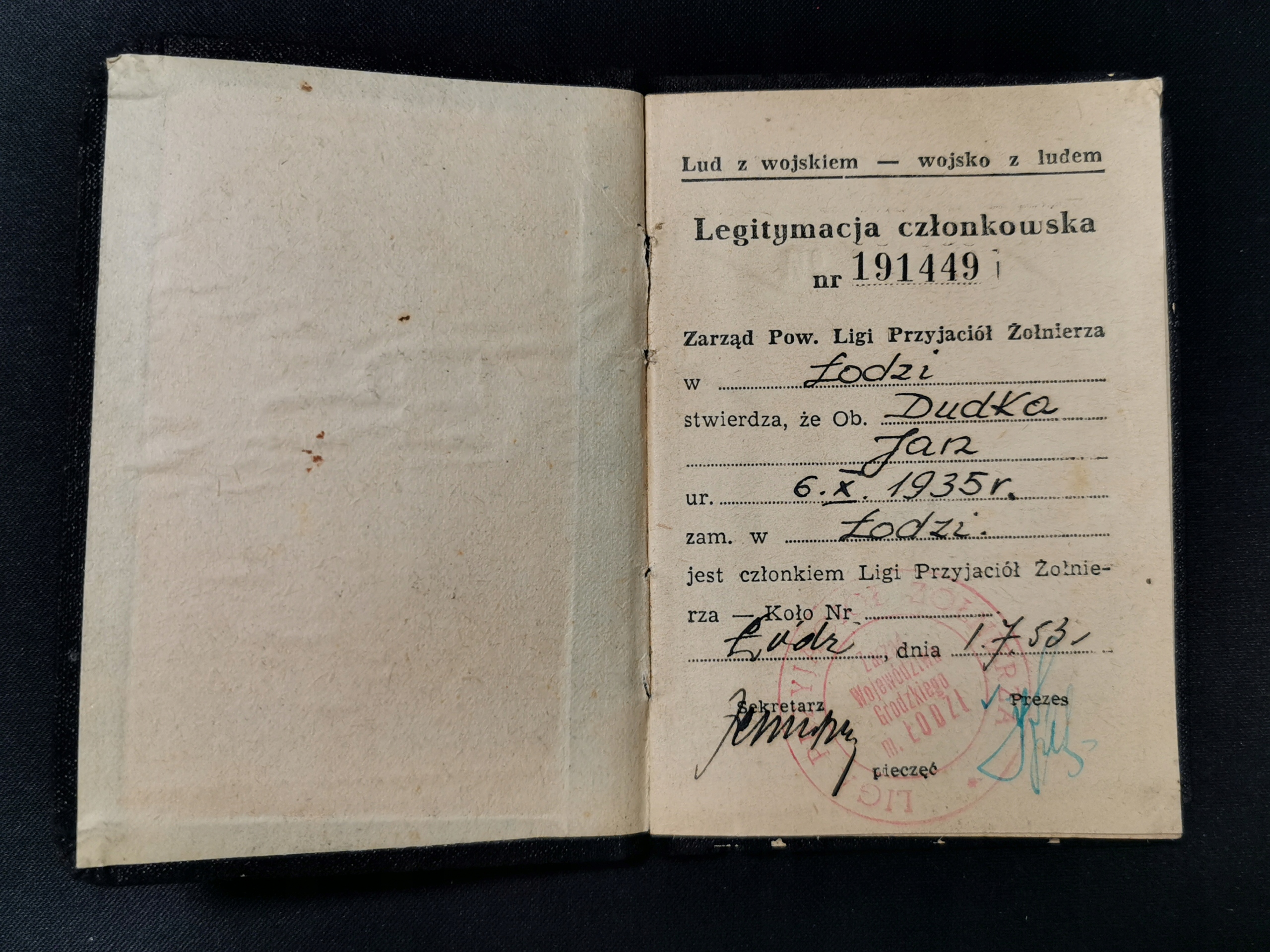 Legitymacja Liga Przyjaciół Żołnierza Łódź 1953