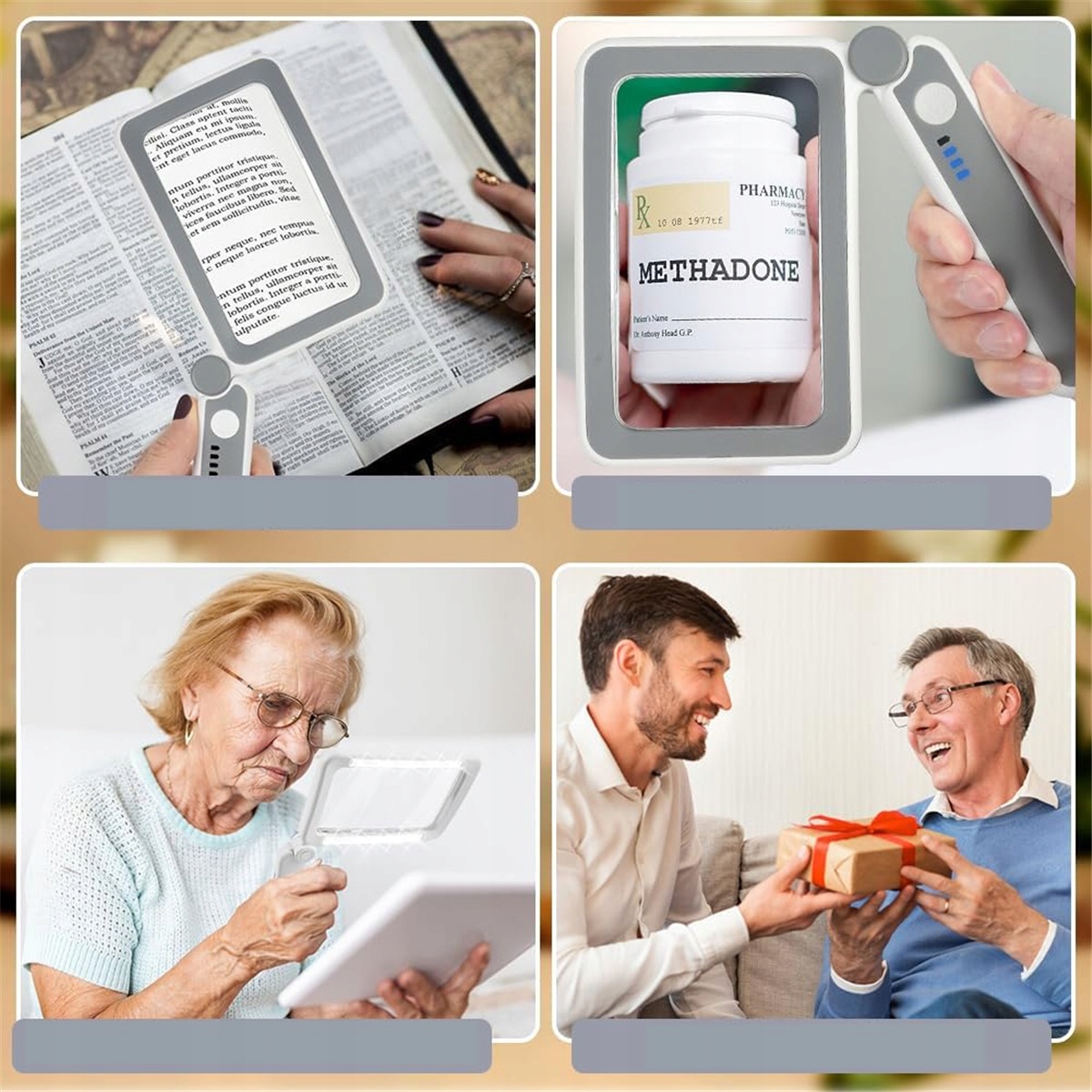 ⛎⛎Ідеальний подарунок для людей похилого віку: Більшість людей похилого віку важко читати дрібний шрифт на купонах, рецептах і упаковках ліків. Ця прозора лупа з підсвічуванням для огляду збоку є ідеальним подарунком для людей похилого віку.