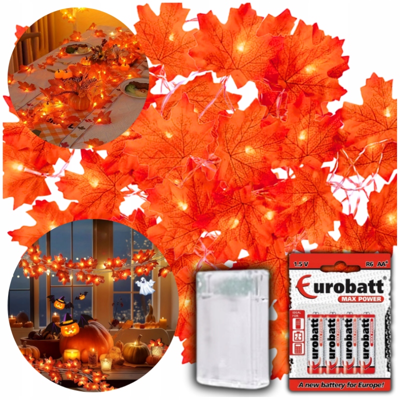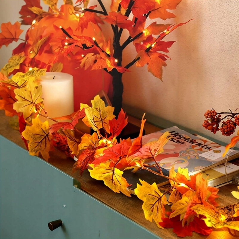 Прекрасний легкий ланцюг з кленовим листям, який можна використовувати скрізь завдяки освітленню настрою. Ідеальна прикраса до: