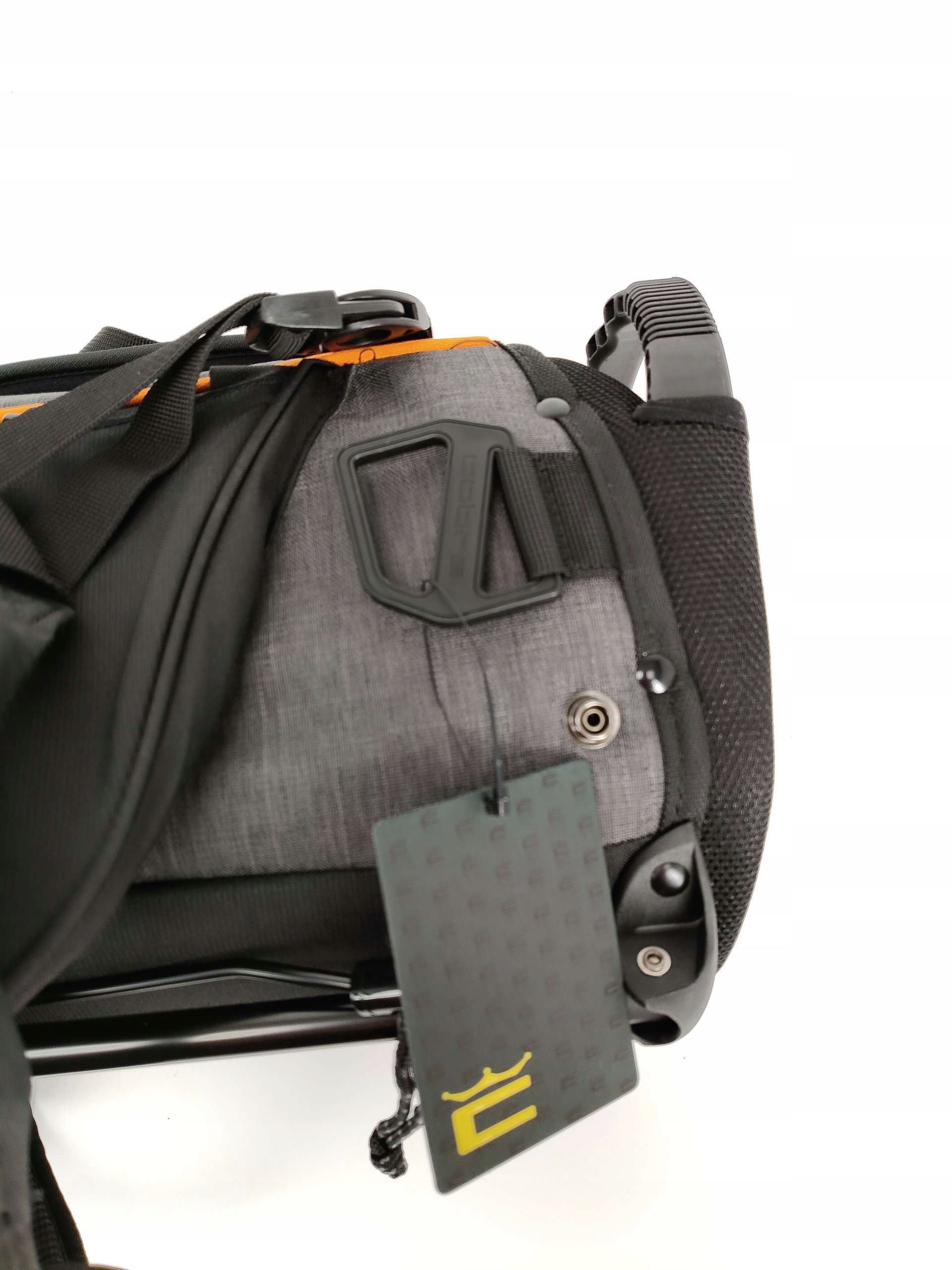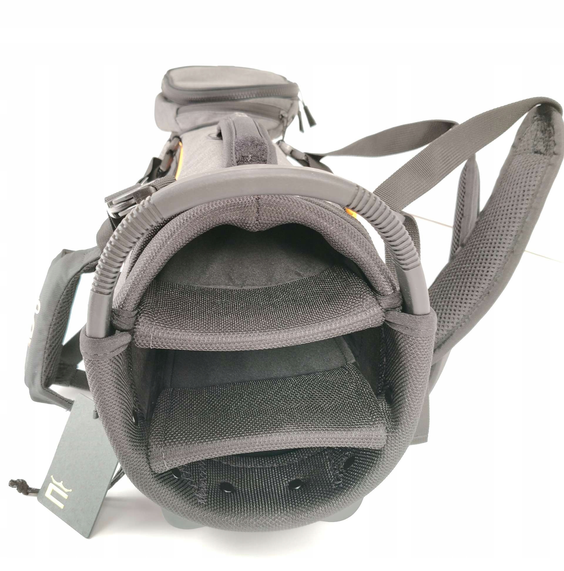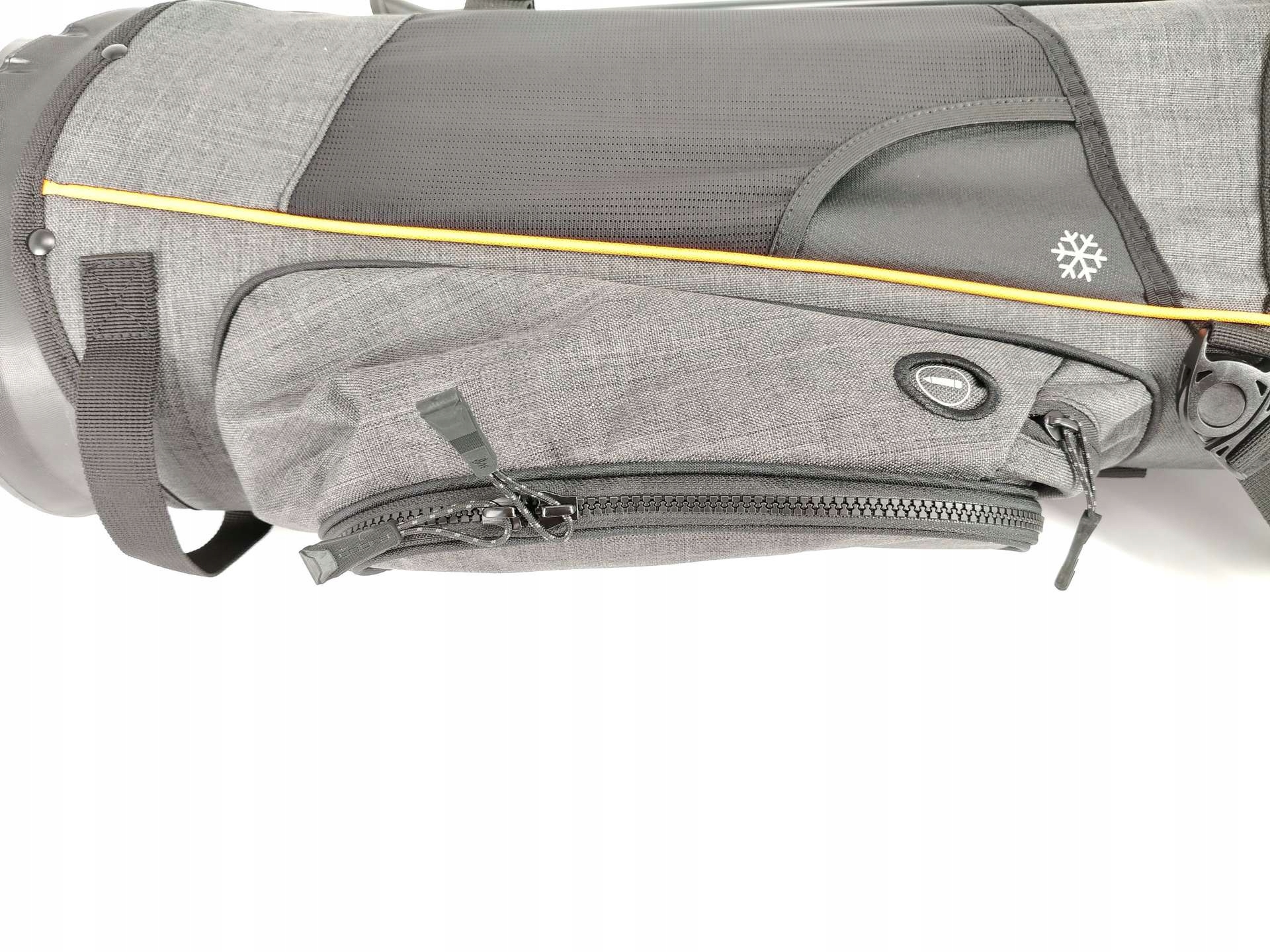Три місткі відділення допоможуть організувати спорядження, забезпечуючи швидкий доступ до найнеобхідніших аксесуарів. Чорно-сіра сумка з помаранчевими акцентами додасть характеру будь-якому набору для гольфу.