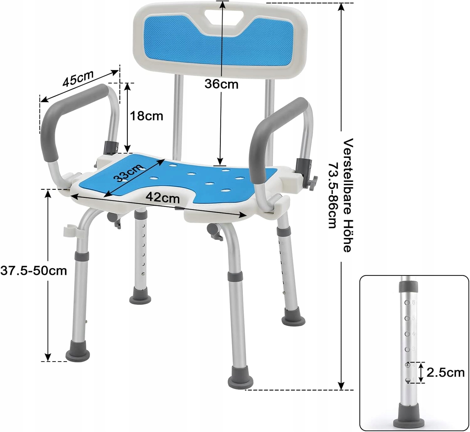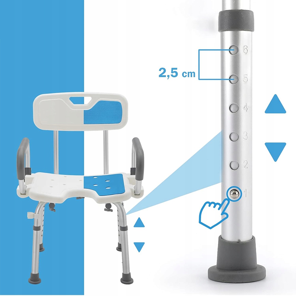 Регульована висота та максимальна вантажопідйомність до 300 фунтів дозволяють стільцю краще відповідати комфорту та типу тіла різних користувачів. Це крісло для душу має ергономічний дизайн, щоб забезпечити максимальне розслаблення навіть під час тривалого душу.