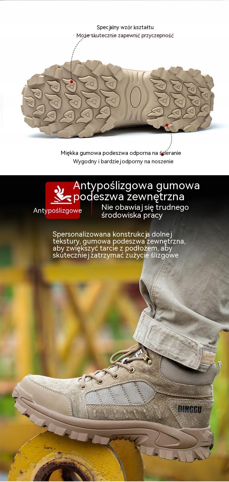 Безпека стопи забезпечується використанням металевого носка, стійкого до ударів і здавлювання.