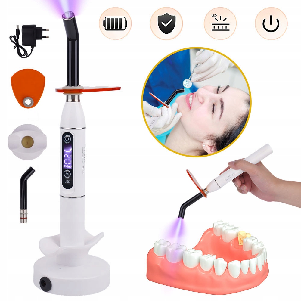 🦷🦷 побудований -in -in -сильний світлодіод, що характеризується високою яскравістю, секрецією низького тепла, довгим життям та енергозбереженням. Оснащений сенсорними кнопками, простим у використанні, час затвердіння можна регулювати в діапазоні від 5 до 40 секунд.