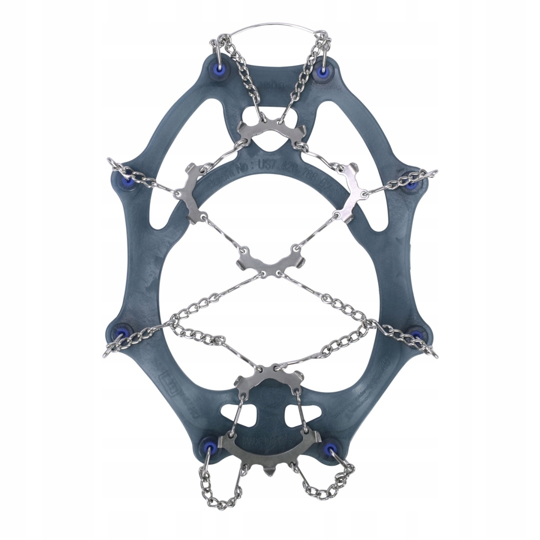 Модель оснащена зубцями з нержавіючої сталі діаметром 7,5 мм, які забезпечують дуже хороше зчеплення на слизьких і твердих поверхнях, таких як лід або утрамбований сніг. Вони також добре працюють на брудних стежках, покращуючи стабільність і зменшуючи зусилля, необхідні для подолання складної місцевості. Верхня частина ручок виготовлена з тонкого, гнучкого еластомеру, який забезпечує гарне прилягання до взуття.