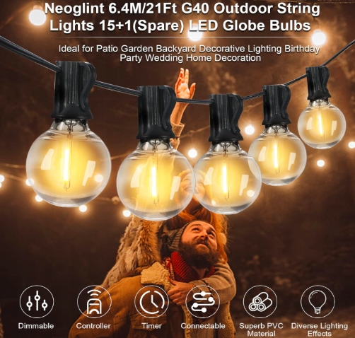 Легкий ланцюжок Гарланда Neoglint з лампочками G40 6,4 м теплий колір