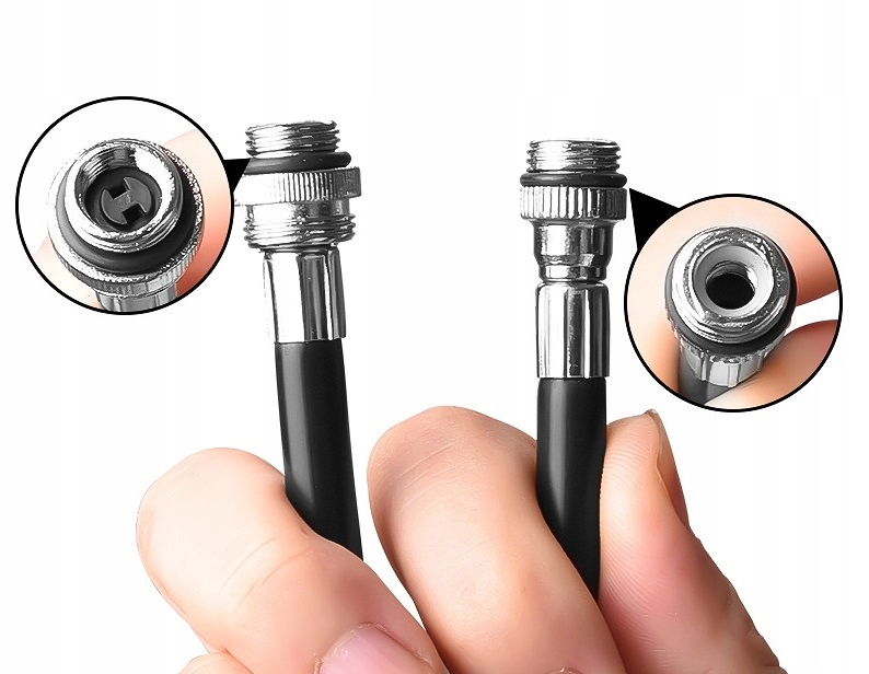 Примітка для себе. Шланг має однакову зовнішню різьбу з обох сторін для підключення до насоса. Ці нитки відрізняються внутрішньо. Великий призначений для Schrader, а малий для Dunlop і Presta.