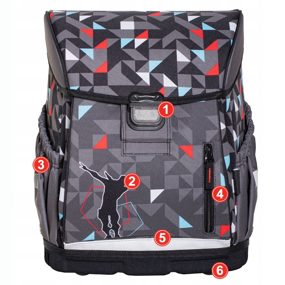 - Двоступеневі регульовані плечові лямки та нагрудний ремінь розвантажують хребет і забезпечують правильну поставу дитини, утримуючи шкільну сумку у правильному положенні