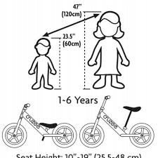 Кермо: діапазон регулювання висоти керма велосипеда Cruzee Balance становить від 50 до 60 см. Кермо оснащено чорними гумовими ручками, розширеними на кінцях. Вони запобігають зісковзуванню рук дитини з керма.