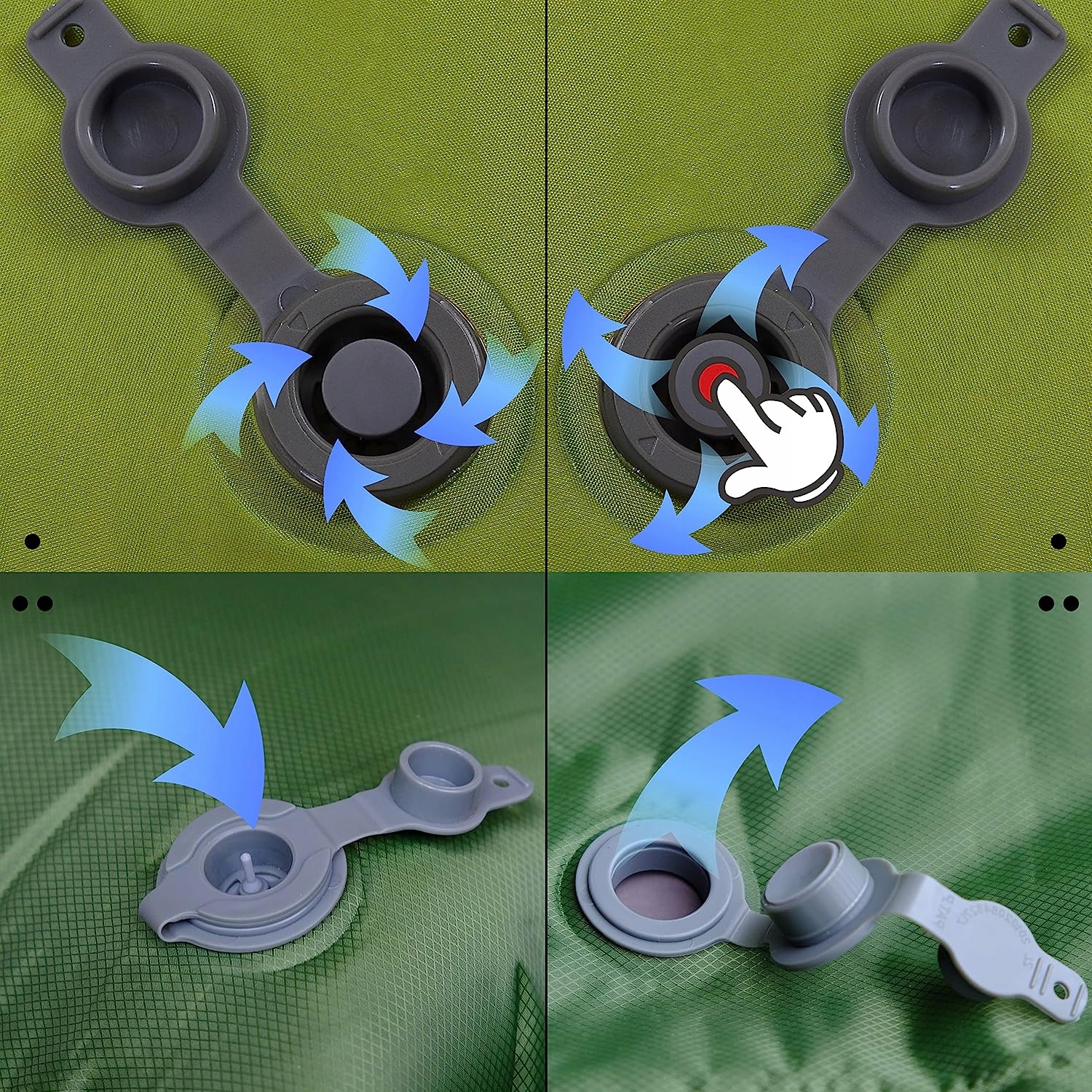 Ця надувна підстилка для сну в кемпінгу має клапан великого розміру, який дозволяє швидко та легко надувати та здувати повітря. Просто відкрийте клапан, і килимок наповниться повітрям, розширюючи піну, без необхідності упаковувати насос, а потім ви зможете лягти на спальник і насолоджуватися спокійною ніччю. Згорніть кемпінговий килимок, щоб здути його, перш ніж пакувати речі