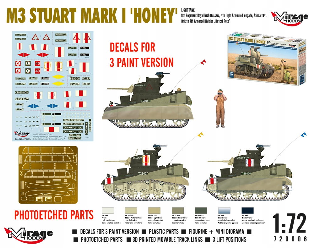 Легкий танк M3 Stuart Mk.I 'Honey', Mirage Hobby 720006