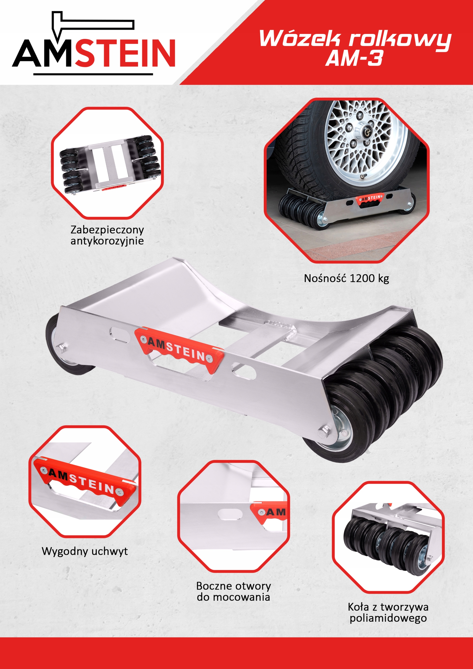 Легкий транспортний ролик, сервісний рулон під колесом Amstein AM-3