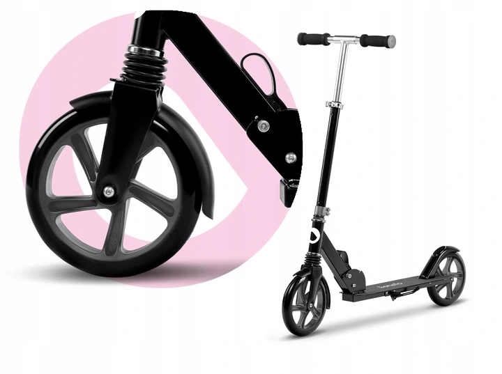- Міцна підставка, встановлена в центрі ваги, запобігає випадковому перекиданню самоката.