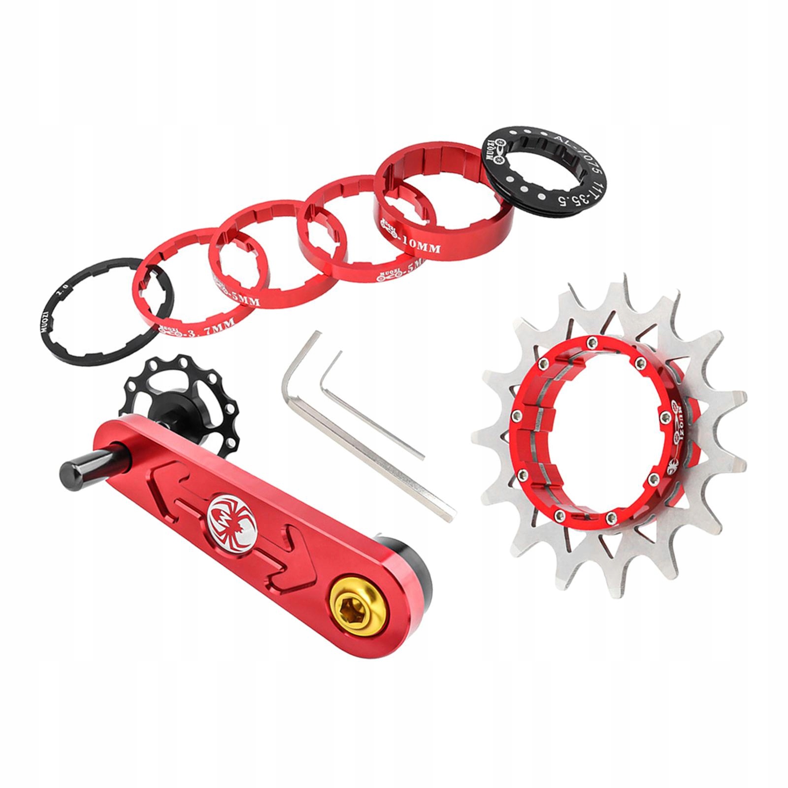 4 Болти, виготовлені з нержавіючої, антикорозійної та антикорозійної сталі. Елемент тиску та прокладка виготовлені з алюмінієвого сплаву 6061, зрізів ЧПУ, гладкої поверхні та порожньої структури.забезпечує ідеальну напругу ланцюга для педалі з меншими зусиллями, придатними для довгого відкритого водіння.