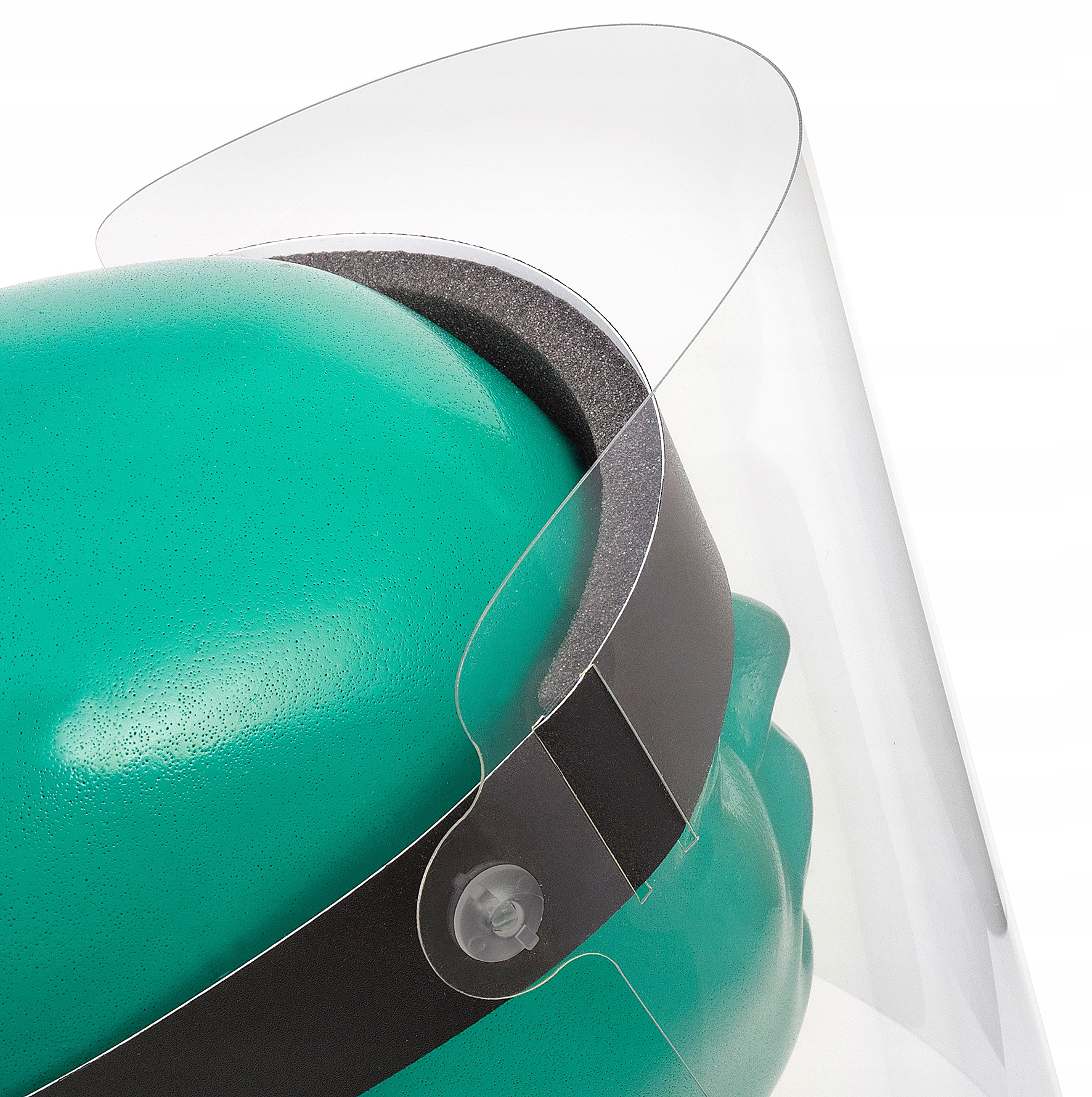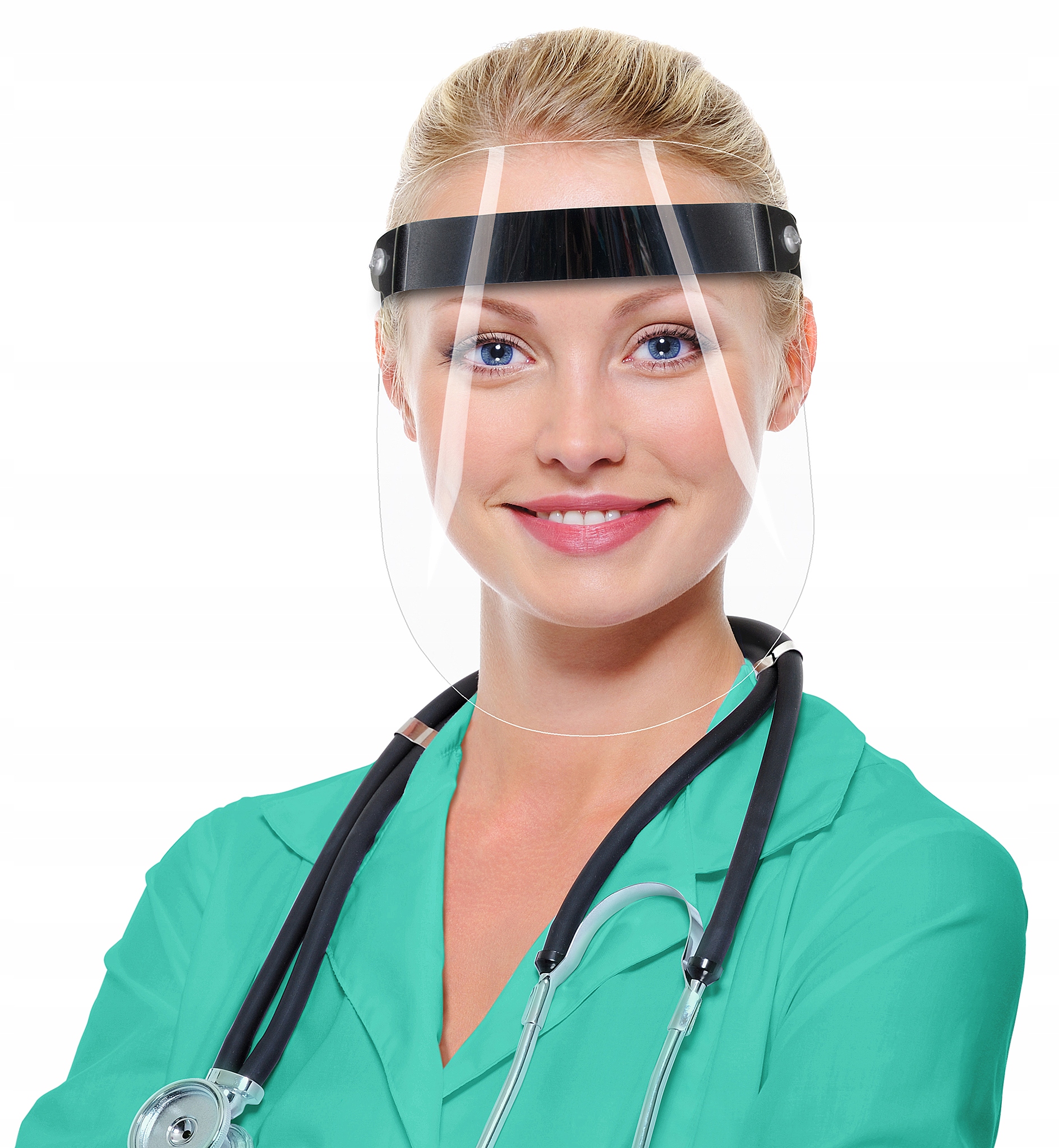 Щиток для обличчя знижує ризик крапельних інфекцій. Він захищає рот, очі, ніс і слизові оболонки від забруднених рук, а також допомагає гальмувати рефлекс дотику до обличчя і використовується як додатковий елемент захисного одягу. Мала вага козирка не створює значного навантаження на голову під час роботи.