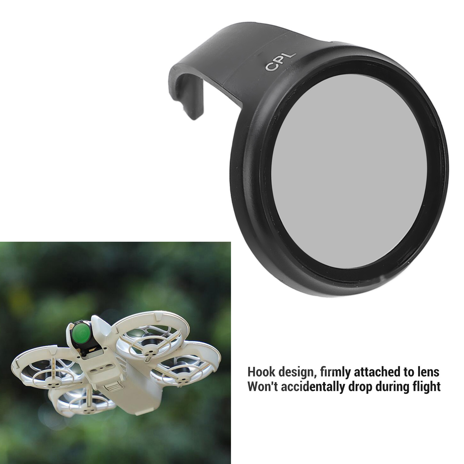 2. З щільним гачком: фільтр безпілотників CPL приймає структуру гачка, яка може бути міцно прикріплена до об'єктива і не випадково падає під час польоту