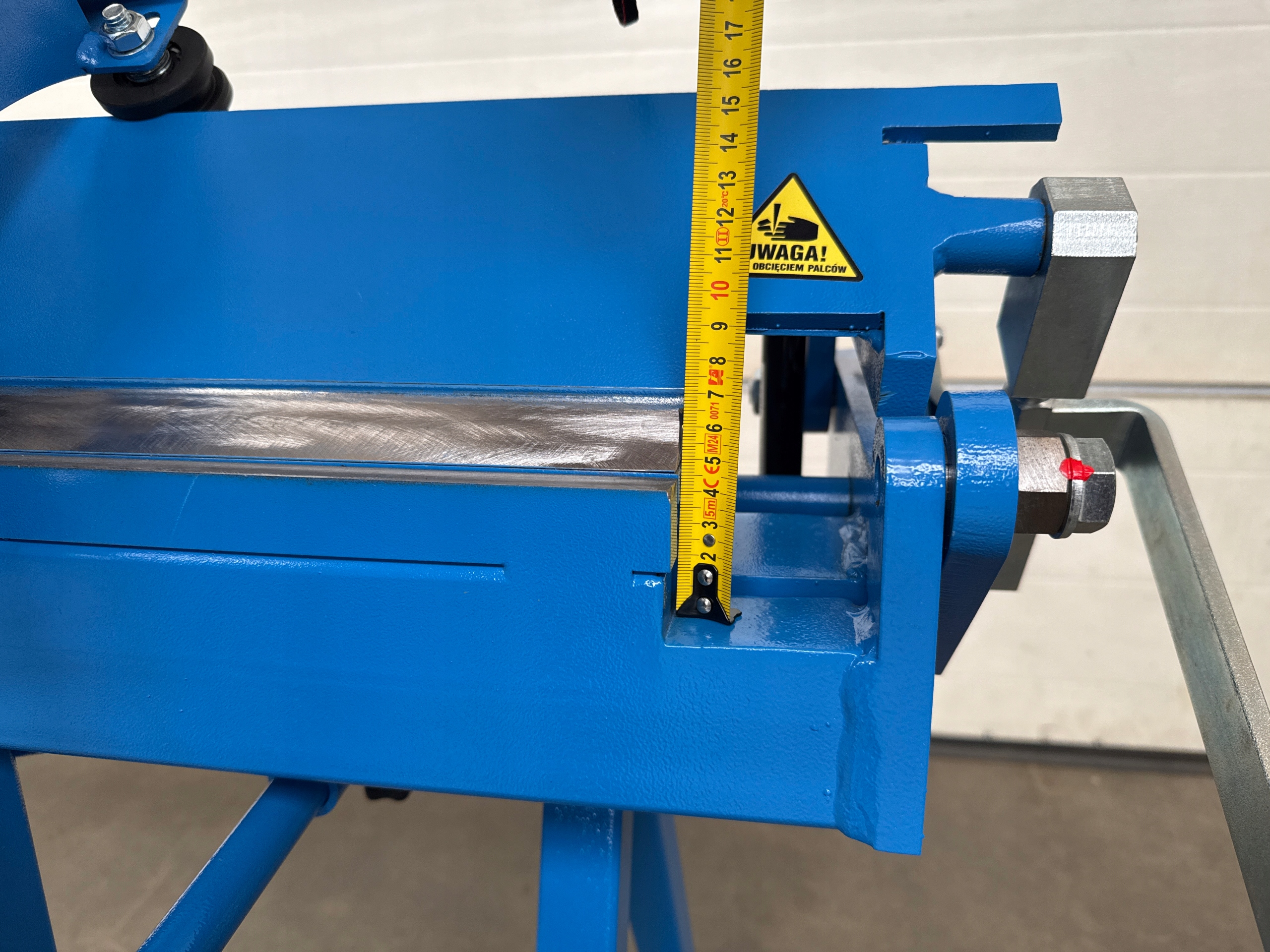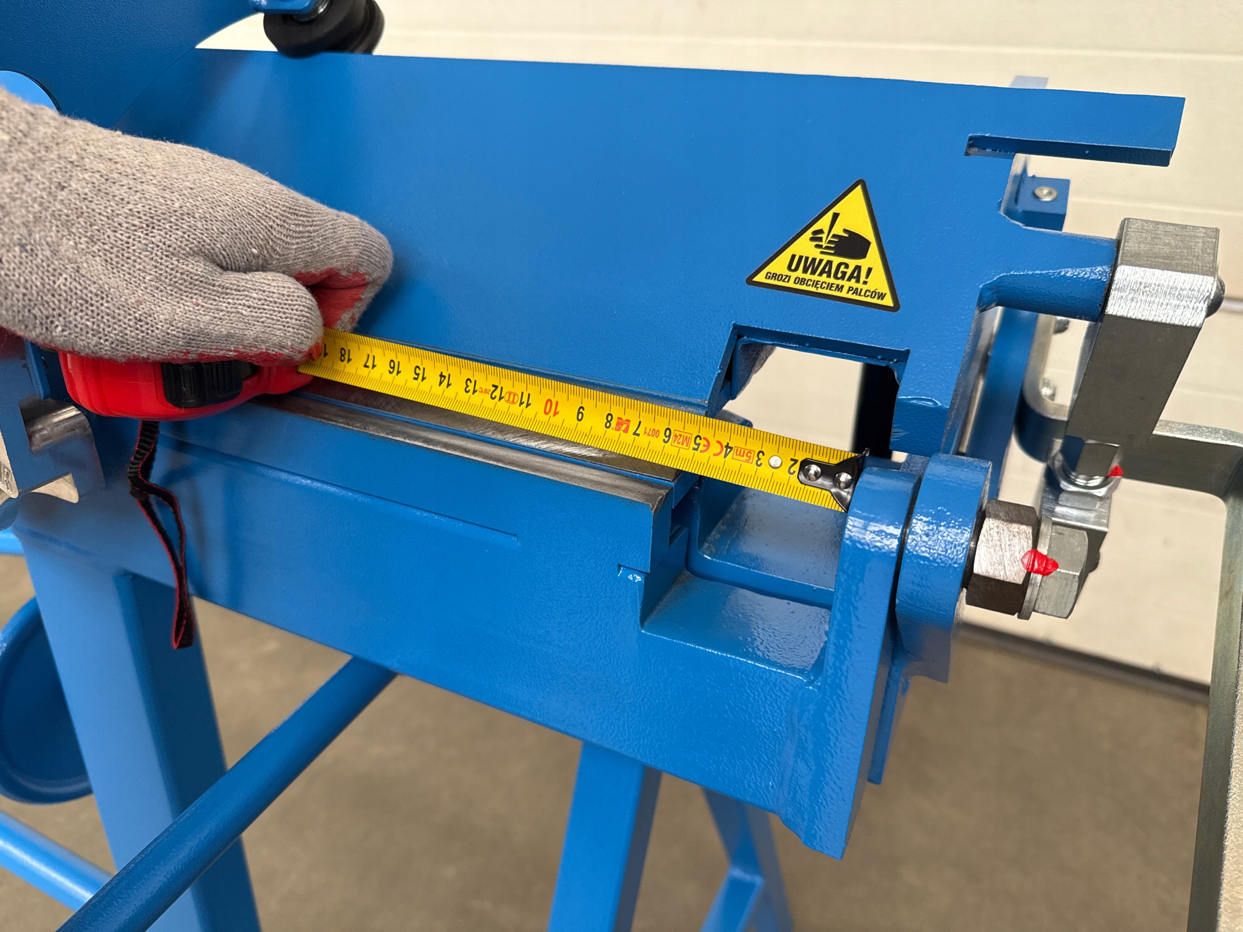 - ПЕРЕДНІ ОБМЕЖУВАЧІ – дозволяють встановлювати ширину різання з передньої частини згинального верстата. Конструкція упорів дозволяє повертати їх на 180° і повертати в колишнє положення. Дуже корисний для послідовного різання листового металу. Передні упори використовуються в повторюваних роботах. Вони багато разів зберігають однаковий розмір довжини розрізаного металевого листа. Швидке та точне вимірювання розрізаного листового металу можна отримати за допомогою встановленої вимірювальної стрічки.