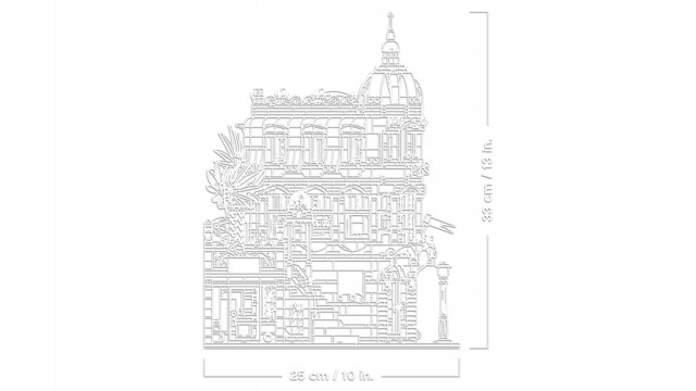 • Архітектурні деталі. Трикутна модель складається з п’яти секцій і містить багато конструктивних деталей. Він також має багато оздоблені фасади та інтер’єр