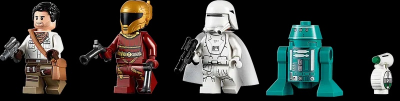 - Включає 6 персонажів LEGO® Star Wars™: міні-фігурки По Дамерона, Зорії Блісс і Штурмовика першого ордену, а також фігурки LEGO D-O та дроїда-астромеханіка.