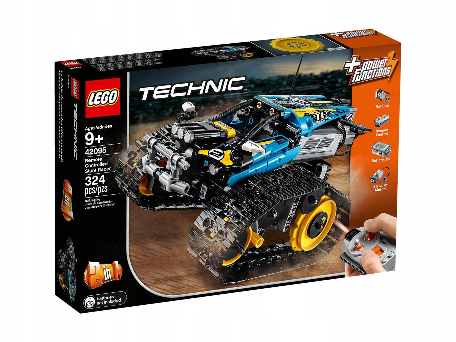 - В комплекті Особливості наступні елементи LEGO® Power Functions: два великі двигуни, приймач, батарейний відсік і пульт дистанційного керування.