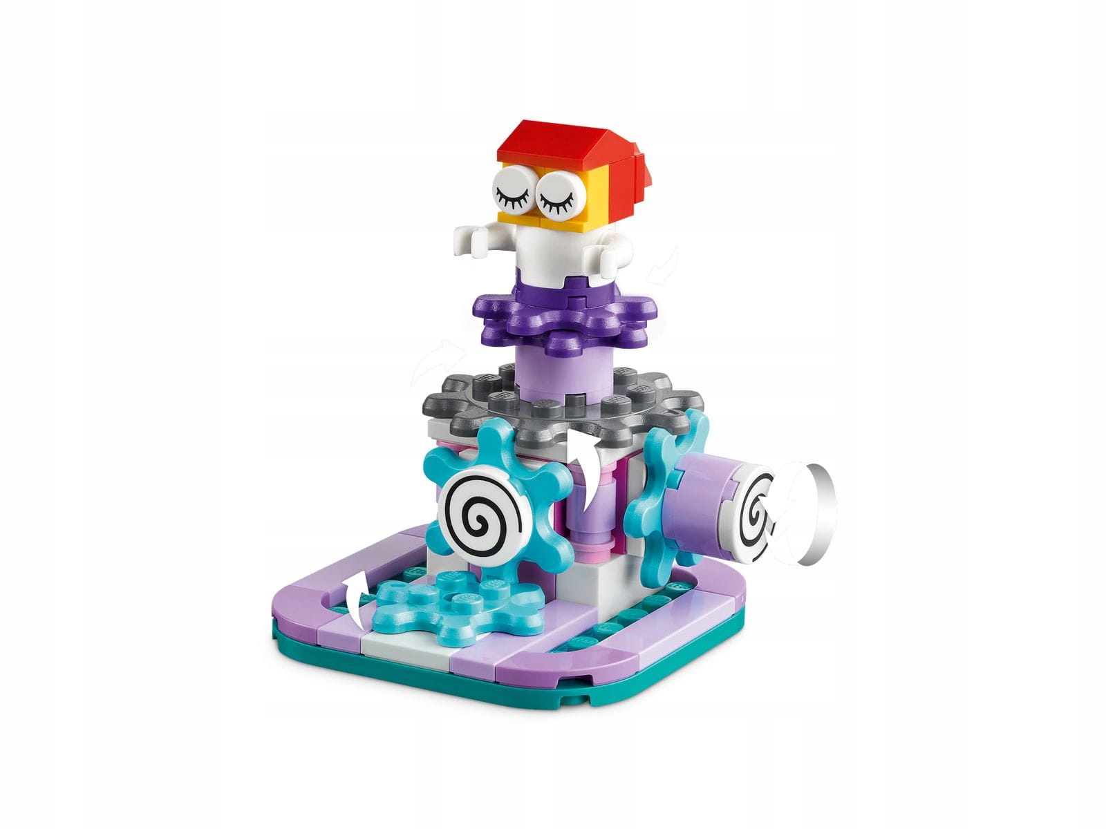 - Що всередині? - все, що потрібно дітям, щоб побудувати балерину, що крутиться, гелікоптер із обертовими гвинтами, яблуко, з якого визирає хробак тощо, а також багато елементів LEGO® для творчого будівництва