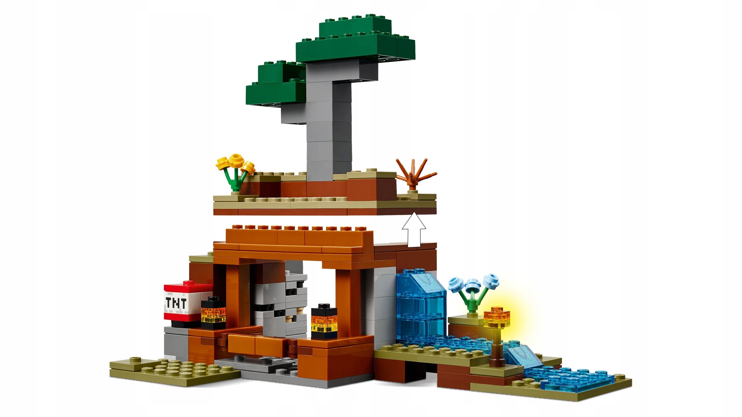 Налаштування в наборі Савани включає шахту з керуванням функцією TNT, який підірве шматок місцевості, виявляючи цінну руду. У шахті є печерний павук і вовк, а також два лінійні кораблі, ваги яких можна використовувати для створення вовчих броні. На боці шахти знаходиться невелика річка та водоспад Лави. Набір можна легко відновити, щоб випробувати нові пригоди. Додаткова цифрова забава надається програмою Lego Builder, яка дозволяє дітям збільшувати та обертати 3D -моделі на пристрої.