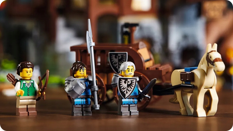 4 У моделі цього колекціонера в типовому стилі LEGO були показані архітектурні деталі трирівневої середньовічної будівлі. Дах і два верхніх рівнів можна вилучити для доступу до мебльованого інтер’єру кухні та спальні. Всередині ви побачите семінар з аксесуарами, характерними для Forge. Також є вогнища з світиться блоком Lego, що імітує тепло та сад з яблуком і добре побудувати. Мініфігури та не тільки набір містять чотири мініфігури, завдяки яким модель оживає: коваль, лучник та два лицарі кріпильних озброєнь Чарні Соко, які мають чотири мечі, три щити та Хальбербард. У коробці також є рухома статуетка коня з коляскою та собакою та жабою. Надзвичайний подарунковий набір є частиною колекції, що надихає моделі LEGO, завдяки яким дорослими дизайнерами можуть розслабитися під час творчого будівлі. Це чудовий подарунок для закоханих LEGO та любителів.