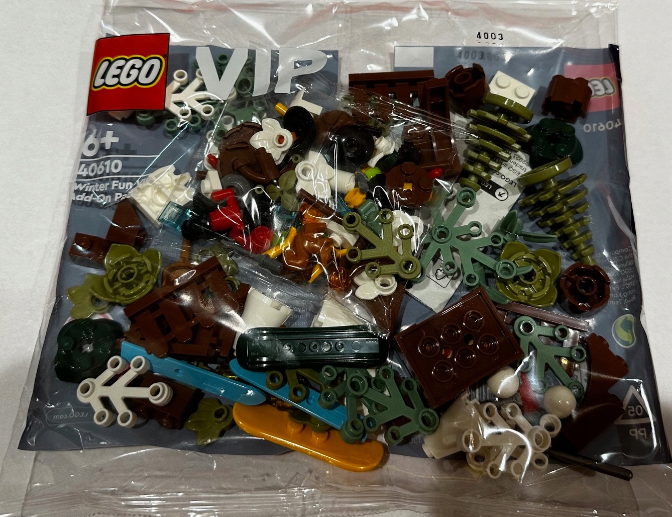 Рекламний набір LEGO - Зимові розваги - додатковий VIP набір надійшов у продаж у 2023 році. Каталожний номер цього набору 40610. Він містить 142 кубики LEGO. Назва набору англійською: LEGO Promotional - Winter Fun VIP Add-On Pack