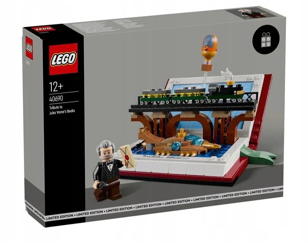 Діти віком від 12 років тепер можуть вшанувати свого улюбленого автора, створивши колекційну модель LEGO® Jules Verne Tribute (40690). Це також ідеальний проект для любителів літератури для дорослих і мандрівників. Натхненний найвідомішими романами письменника, набір посилається на такі твори, як «Навколо світу за 80 днів», «20 000 льє під водою» та «П’ять тижнів на повітряній кулі». Завершене творіння, унікальний декоративний елемент LEGO, оживає з додаванням мініфігурки Жуля Верна.