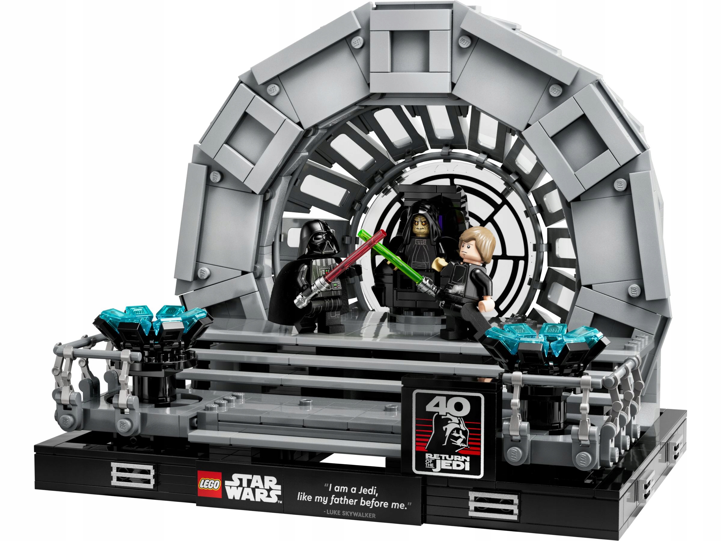 - Автентичні деталі - кругле вікно Зірки Смерті, трон, що обертається, подвійні консолі тощо. У набір також входить табличка на честь 40-річчя прем'єри фільму "Зоряні війни: Повернення Джедая"