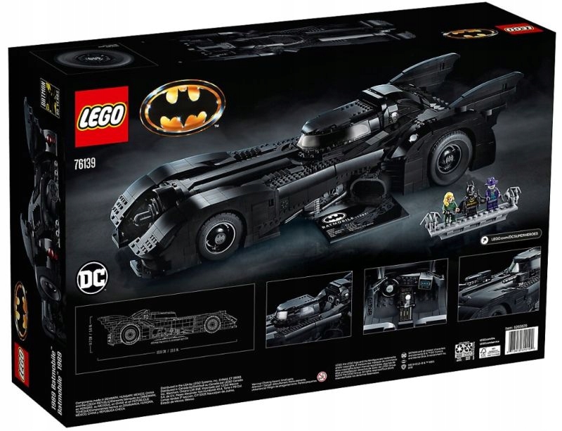 - Версія LEGO® автомобіля Batmobile™ 1989 року має розсувні двері. до кабіни з новим для листопада 2019 року вигнутим лобовим склом, 2 сидіннями мініфігурок, кермом, важільним перемиканням передач і наклейками на панелі приладів. Крім того, автомобіль оснащений двома нестріляючими пістолетами-кулеметами, захованими під капотом, які забираються після повороту вихлопної труби, двома декоративними гаками для закидання, ободами з логотипом Бетмена, спеціально виготовленими шинами для передніх коліс, крилами Бетмена та іншими знаковими деталями.